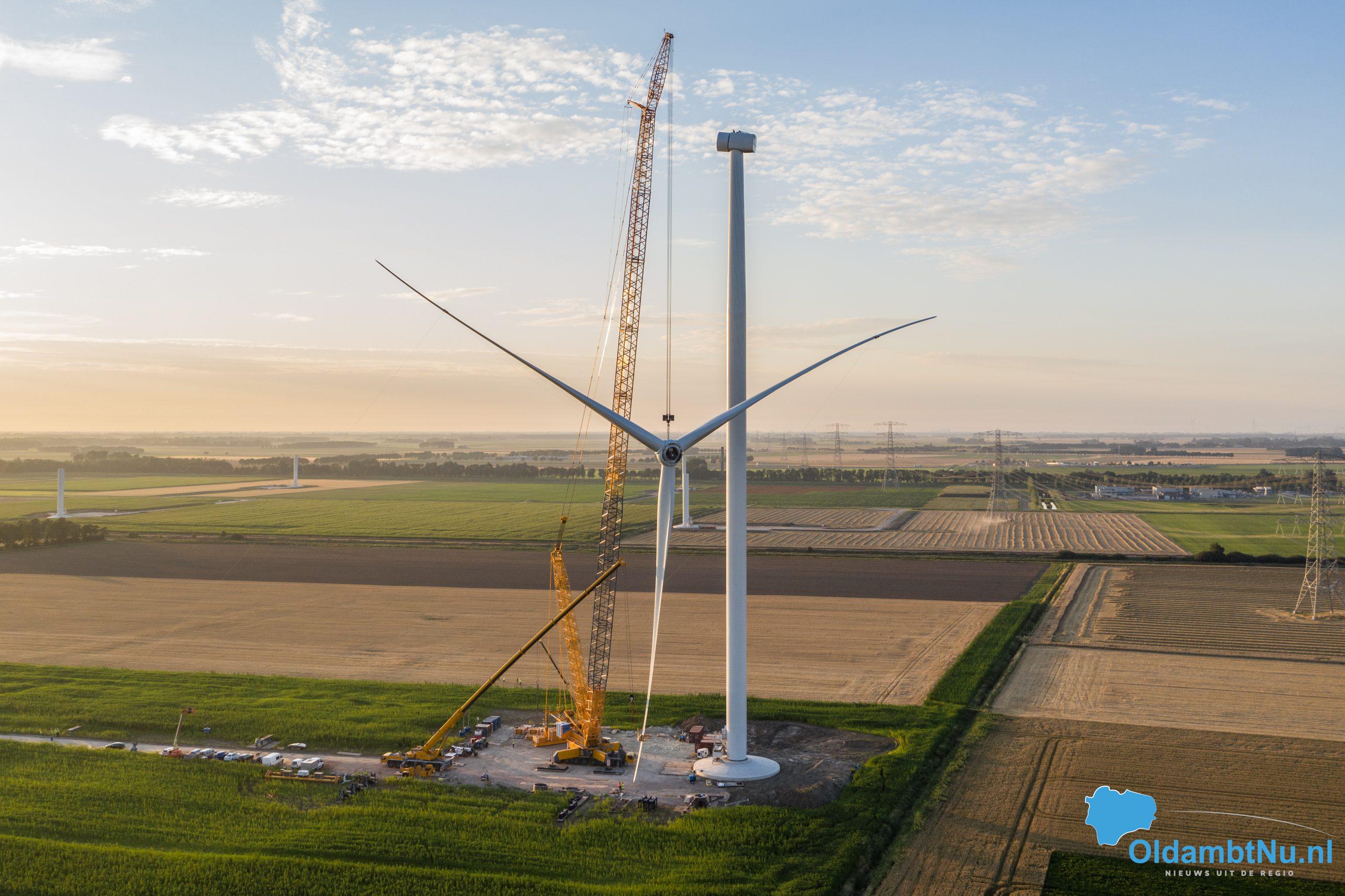 Eerste wieken met grote kraan op windmolen geplaatst
