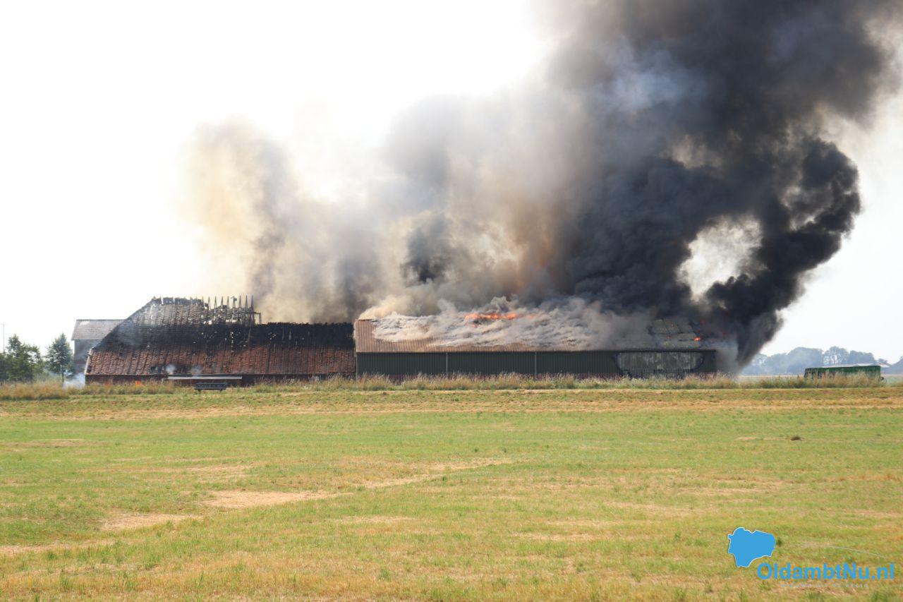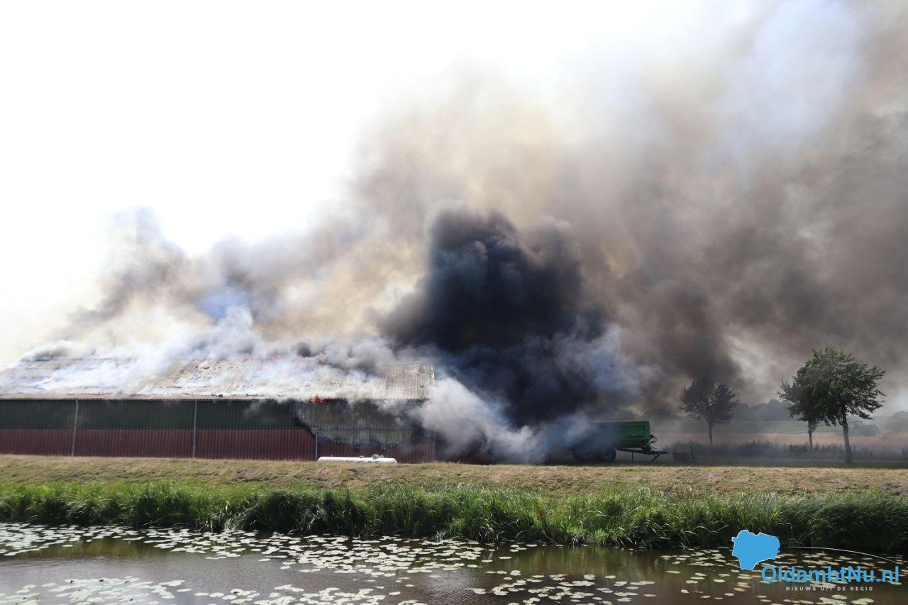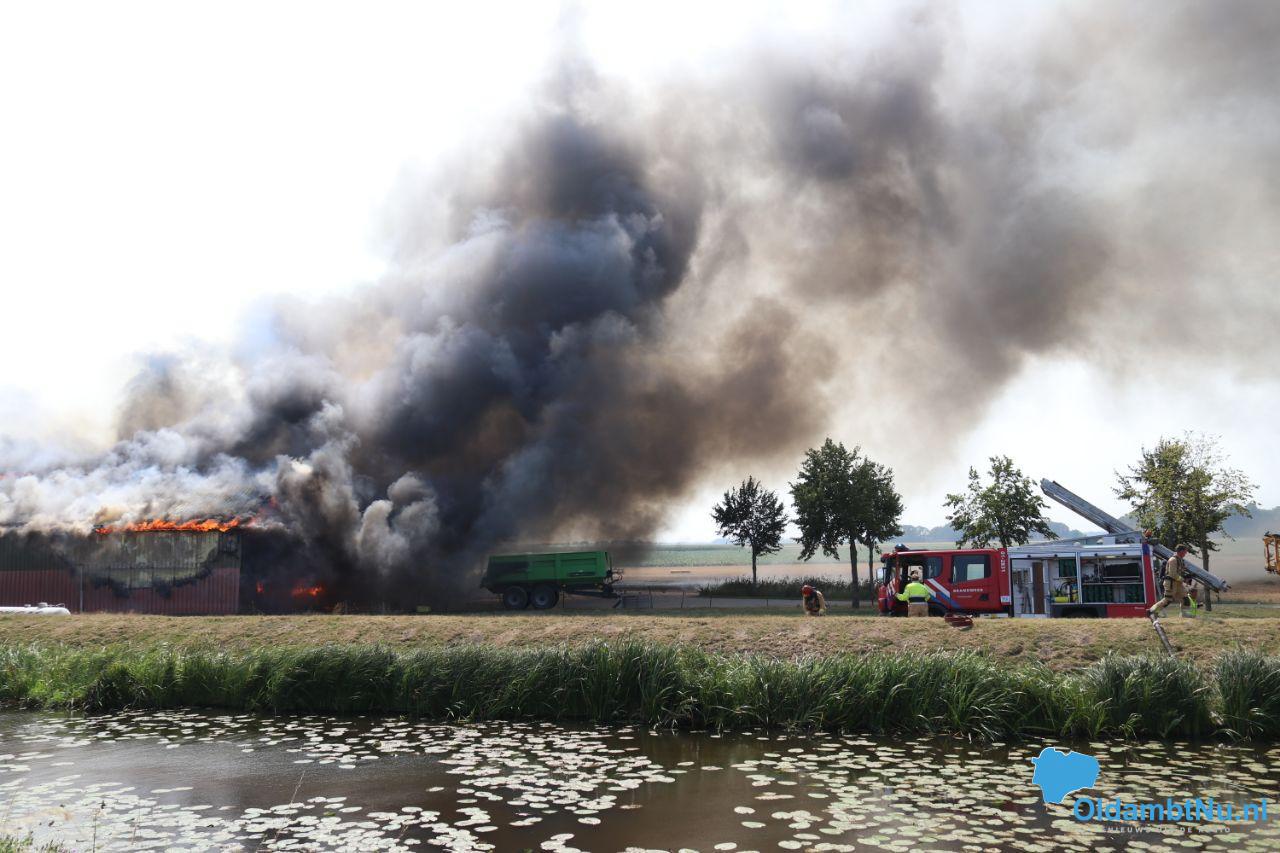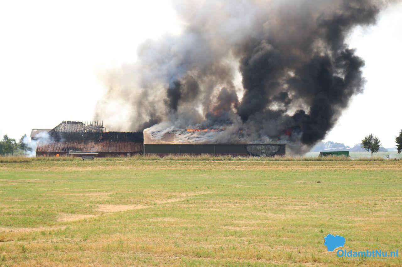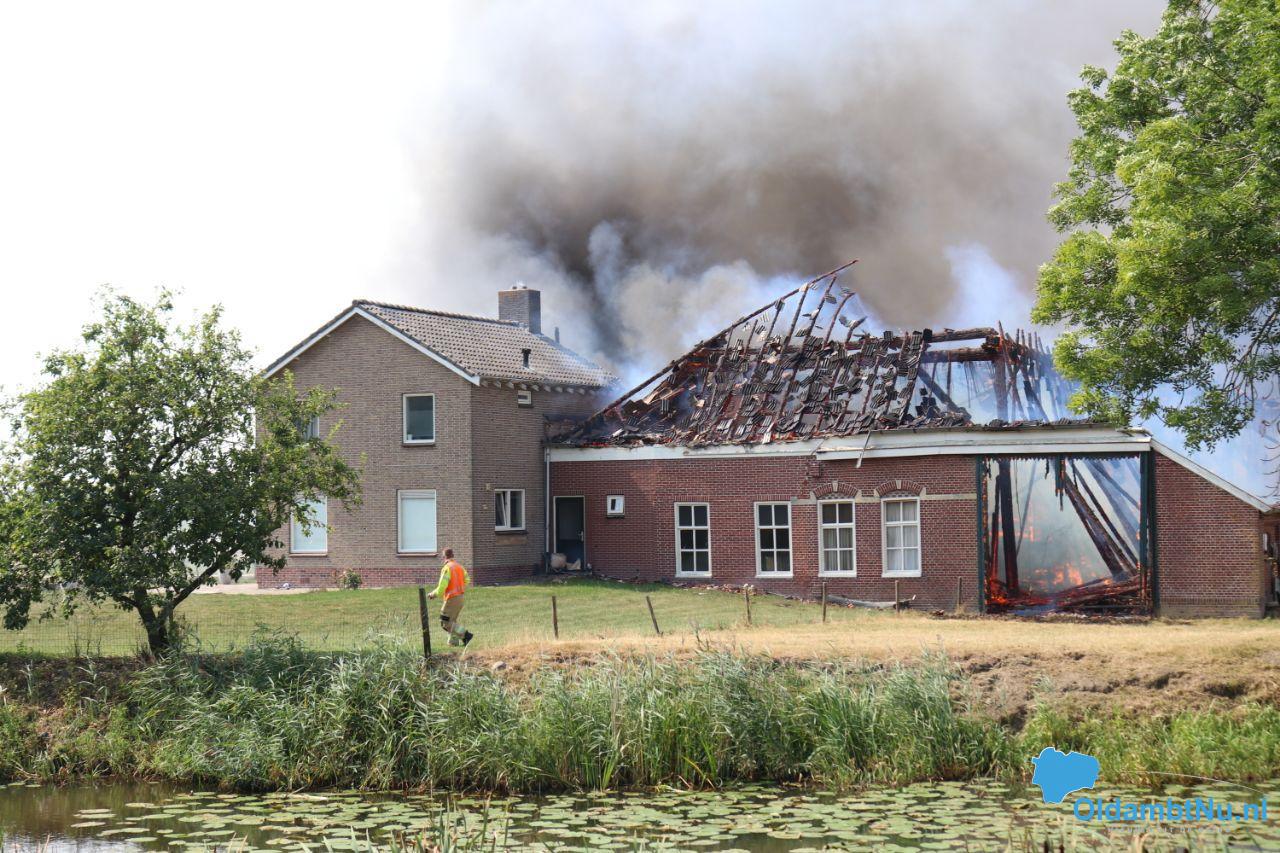 Oudeschans – Dinsdagmiddag is bij een agrarisch bedrijf aan de Dijkwal in Oudeschans een grote brand ontstaan. Op het terrein staat een grote schuur in de brand. Een naastgelegen veld wordt samen met het woonhuis door de vlammen aangestraald.