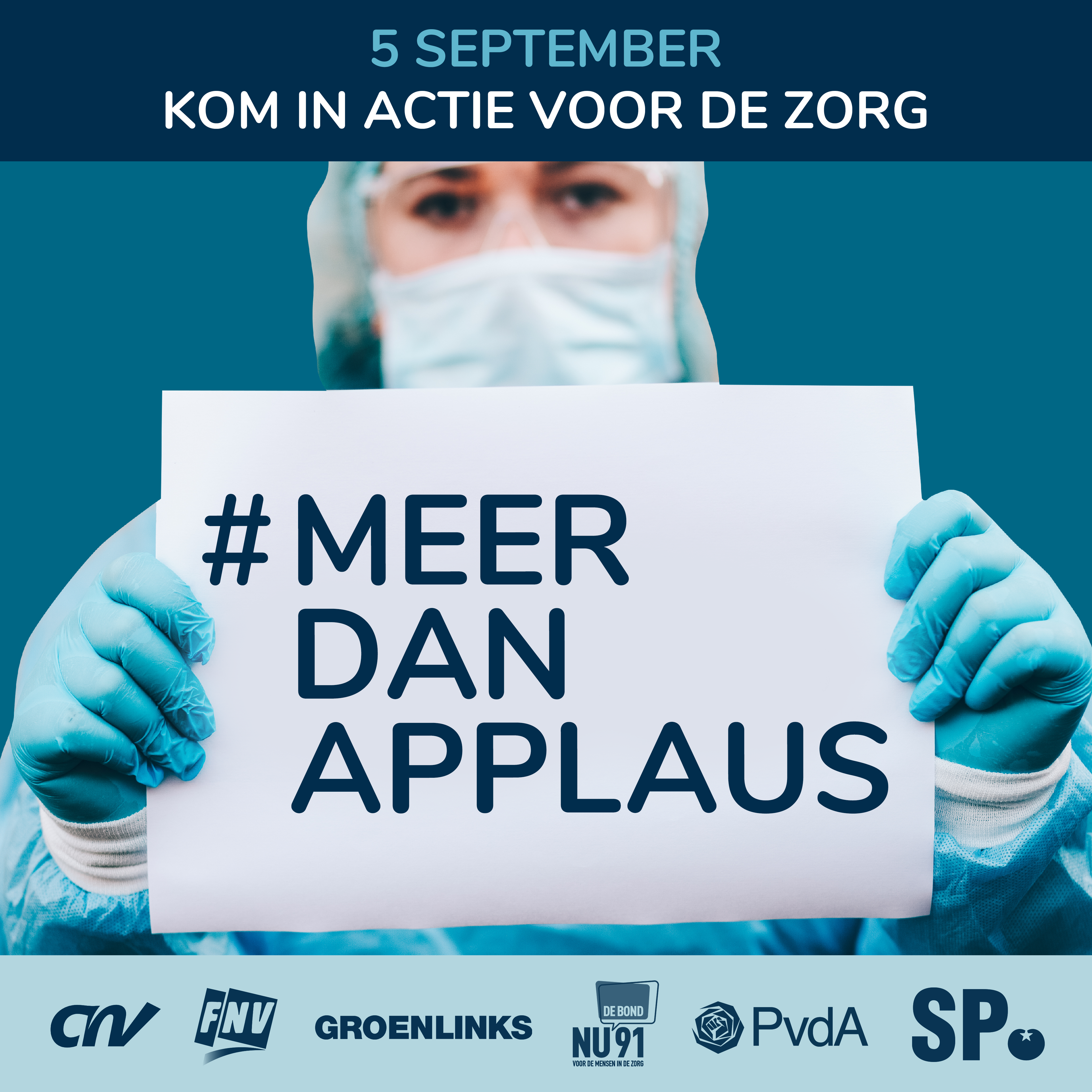 De politieke partijen en de vakbonden slaan de handen ineen en komen gezamenlijk in actie. Doe mee en ga op 5 september om 14.00 naar meerdanapplaus.nl om je solidariteit richting de zorgmedewerkers te laten zien en je te laten horen richting dit kabinet.