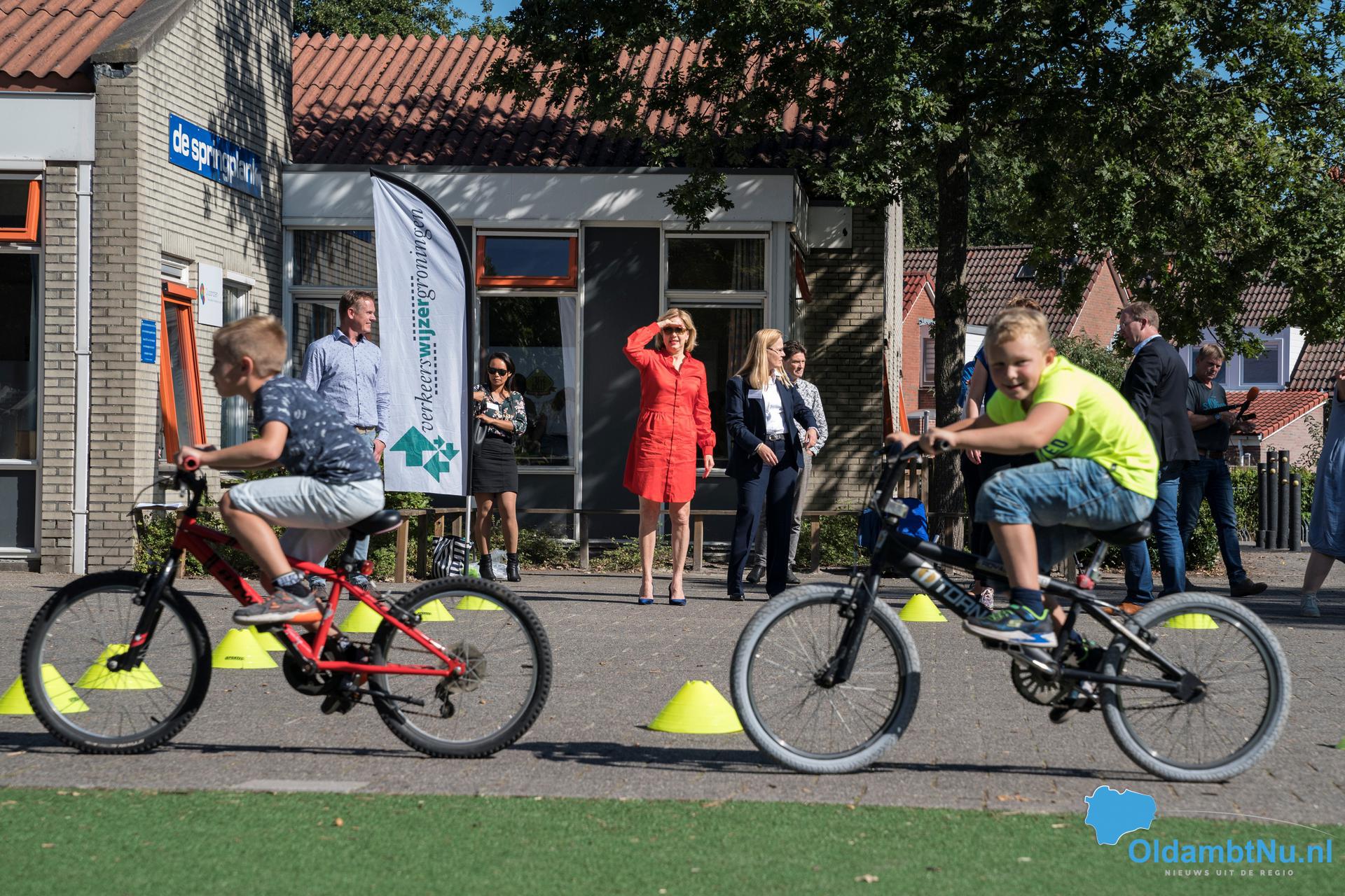 Groningen – Vanwege het vijfjarig bestaan van Verkeerswijzer Groningen (VWG), kwam minister Cora van Nieuwenhuizen van Infrastructuur en Waterstaat 21 september naar Groningen voor een werkbezoek. Op OBS De Springplank in Marum keek ze bij de verschillende verkeerslessen in de groepen 1 tot en met 8. Daarna werd ze op Landgoed Nienoord, vergezeld door onder andere gedeputeerde Fleur Gräper-van Koolwijk en wethouder Geertje Dijkstra-Jacobi van de gemeente Westerkwartier, geïnformeerd over alle activiteiten van Verkeerswijzer Groningen.