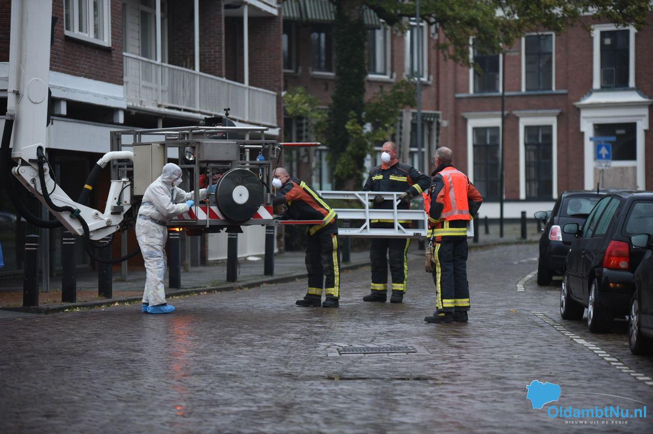 De ambulancedienst had de brandweer gevraagd te assisteren bij het afhijsen van een patiënt aan Poortstraat in Winschoten. Nadat de hulpverleners zich om hadden gekleed om minder snel besmet te raken door het coronavirus hebben ze de patiënt via het raam uit zijn woning gekregen.