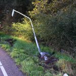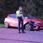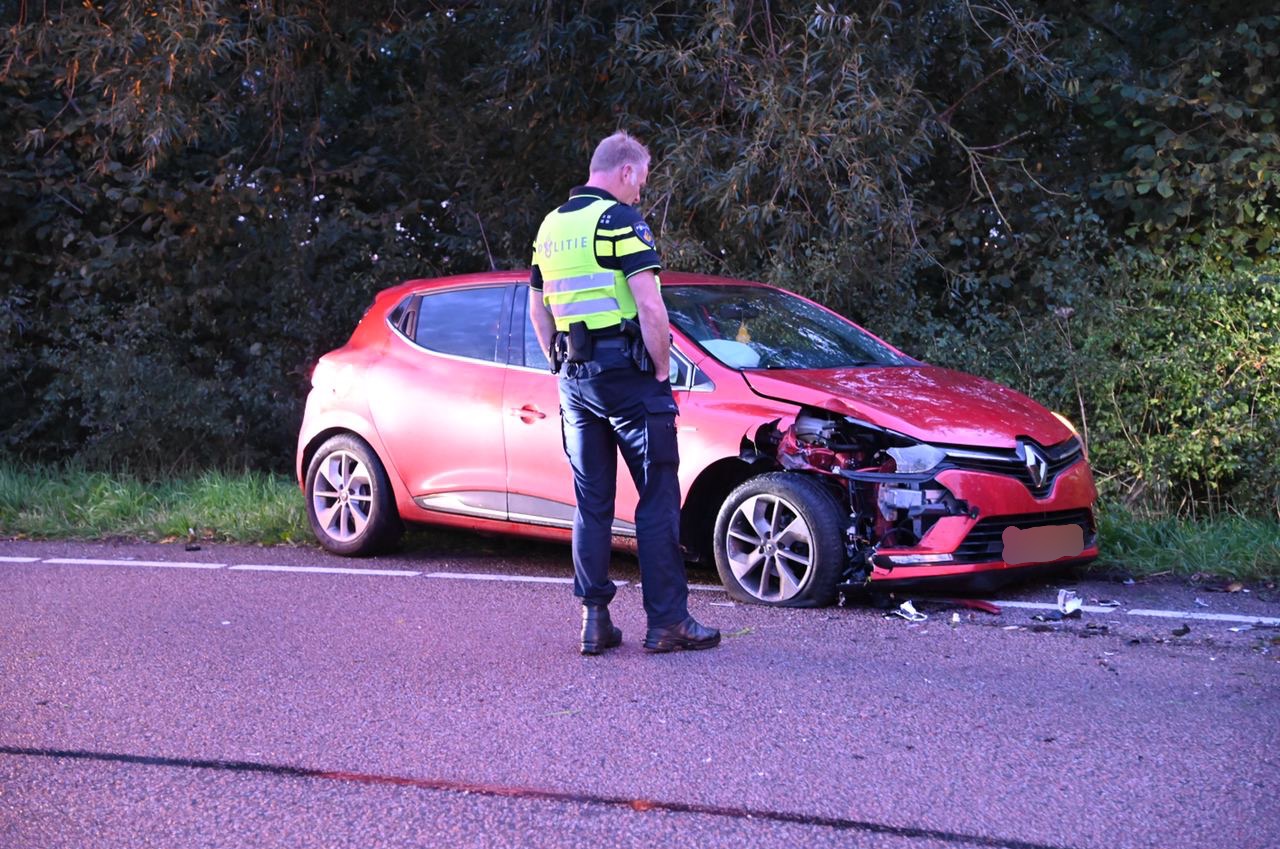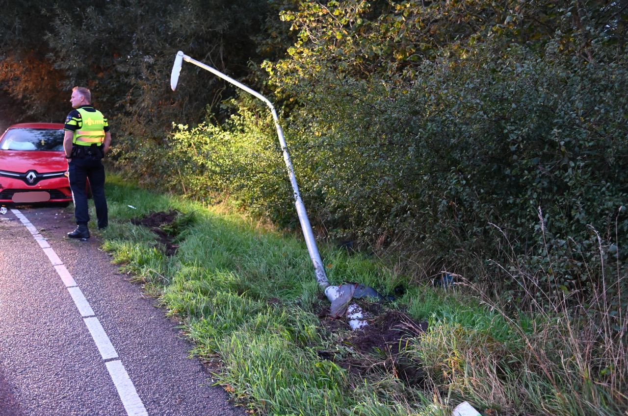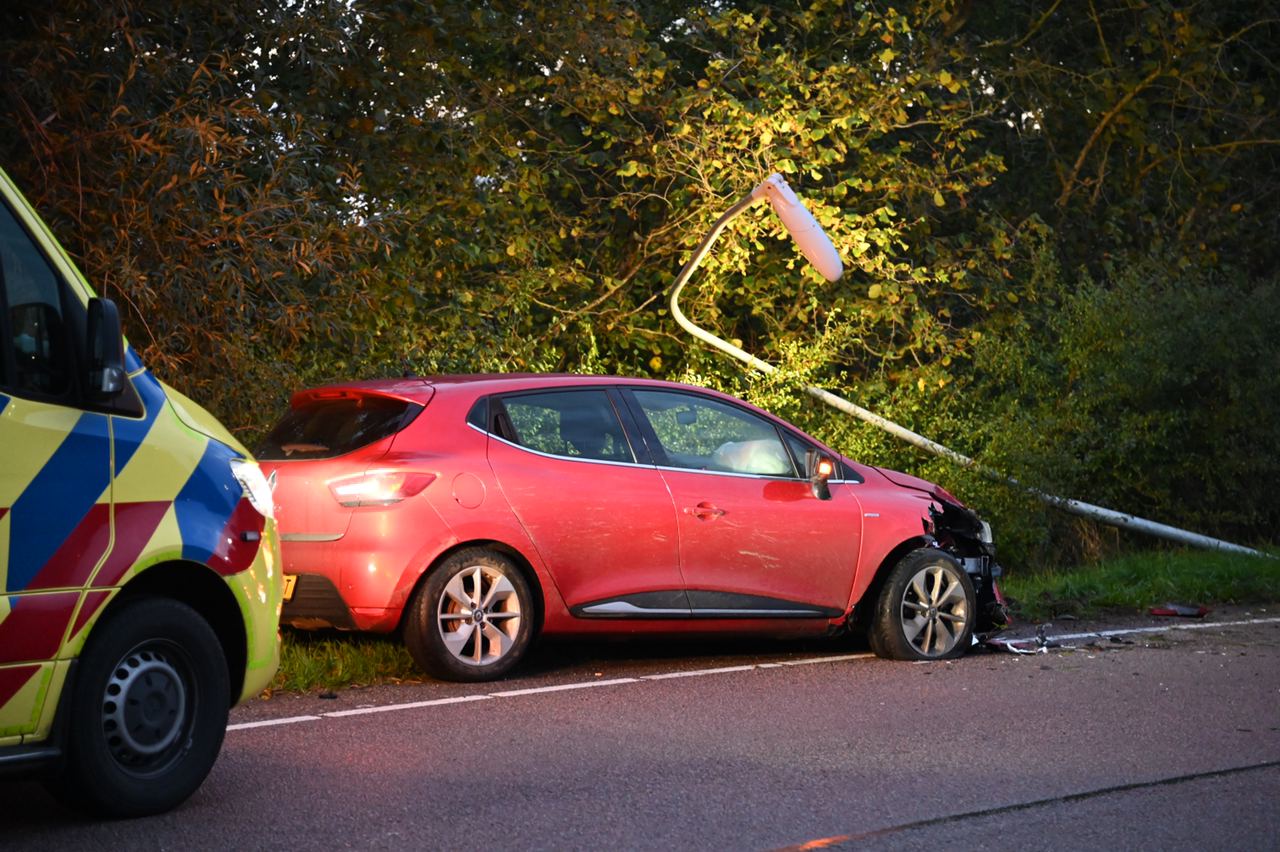 Auto raakt van de weg en botst tegen lantaarnpaal