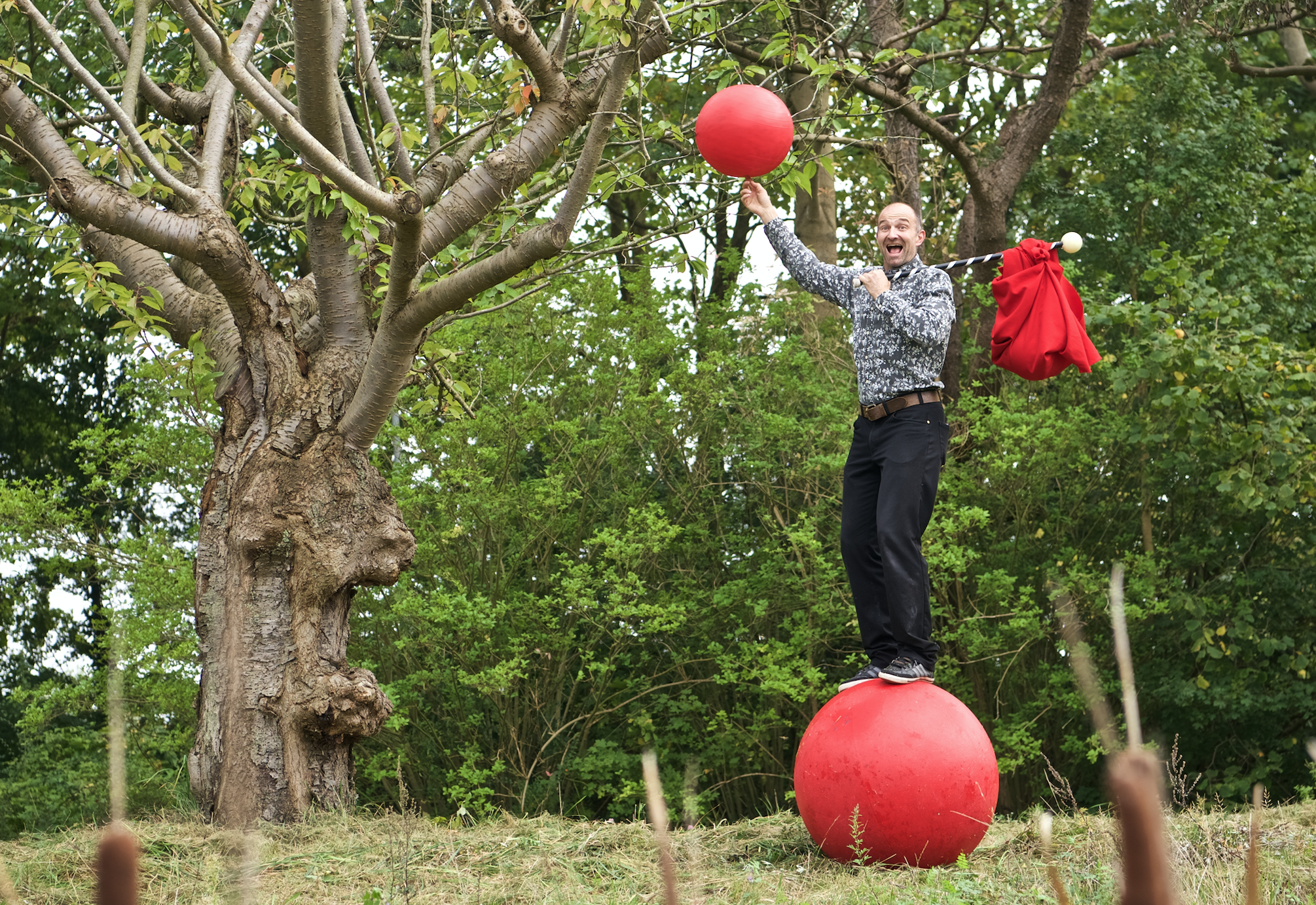 professioneel jongleur en theatermaker. Hij leert je om te lopen op een bal, balanceren op een koord en