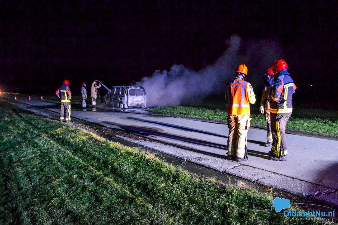 Woldendorp – Brandweer Woldendorp werd vrijdagochtend omstreeks 06.00 uur opgeroepen voor een autobrand in de Reiderwolderpolder bij Woldendorp. Bij aankomst van de brandweer stond de auto volledig in de brand.