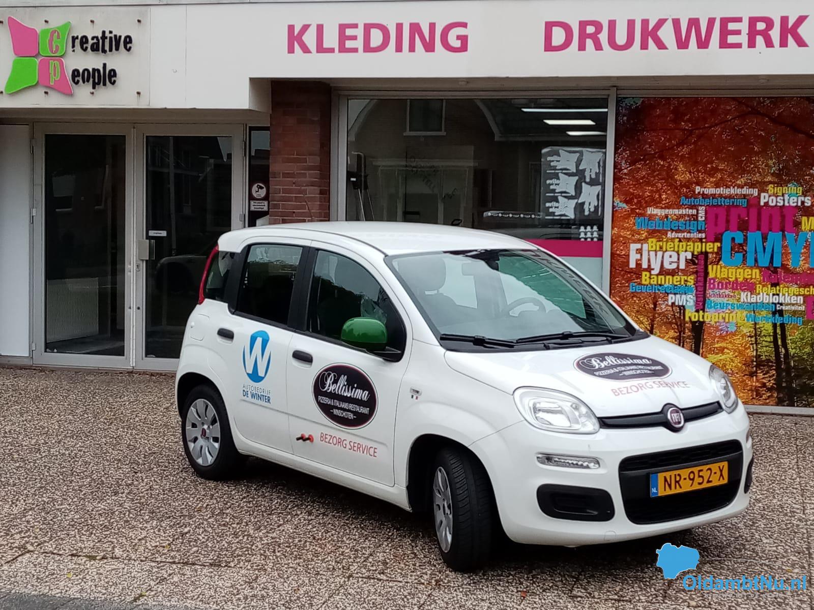 Angelo is blij met deze tijdelijke extra auto en wilde daar iets voor terugdoen. “Dus ben ik naar Creative People gestapt en heb mooie stickers voor op de auto laten maken. Nu rijden wij rond in de regio met een knappe herkenbare auto.”