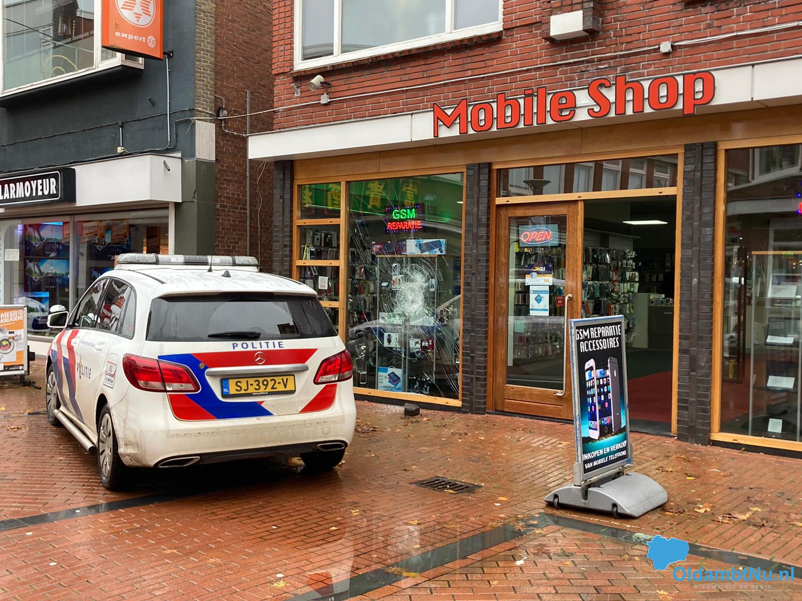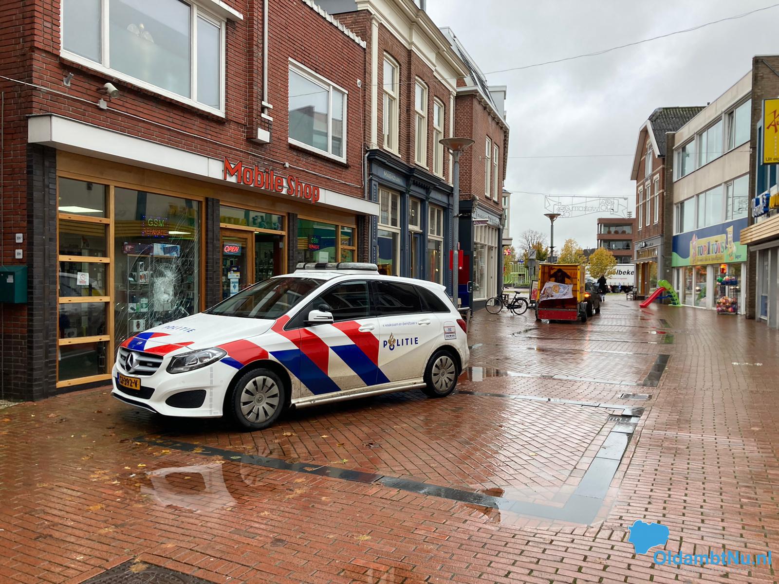 UPDATE: Ruit vernield bij telefoonwinkel Langestraat Winschoten