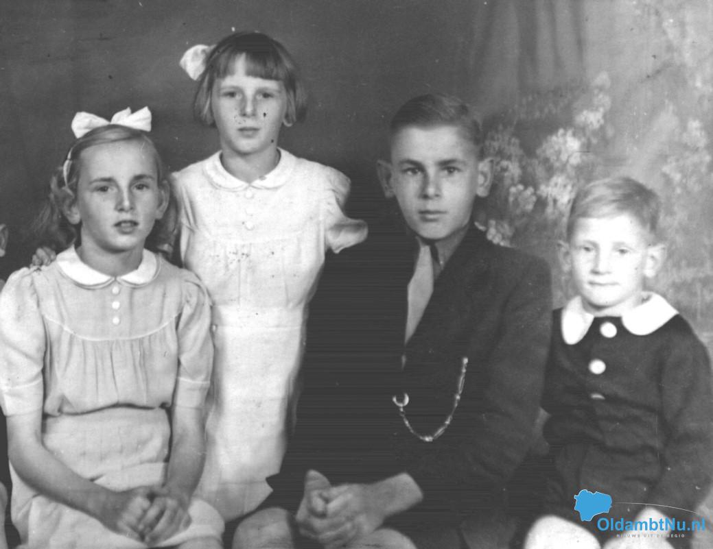 De dame op de foto is Mw. Dina Peijnenburg- Veraa (uit Waalwijk, Noord-Brabant) De kinderen op de foto zijn v.l.n.r. Sjaan, Annie, Jan (hij verbleef elders) en Kees.