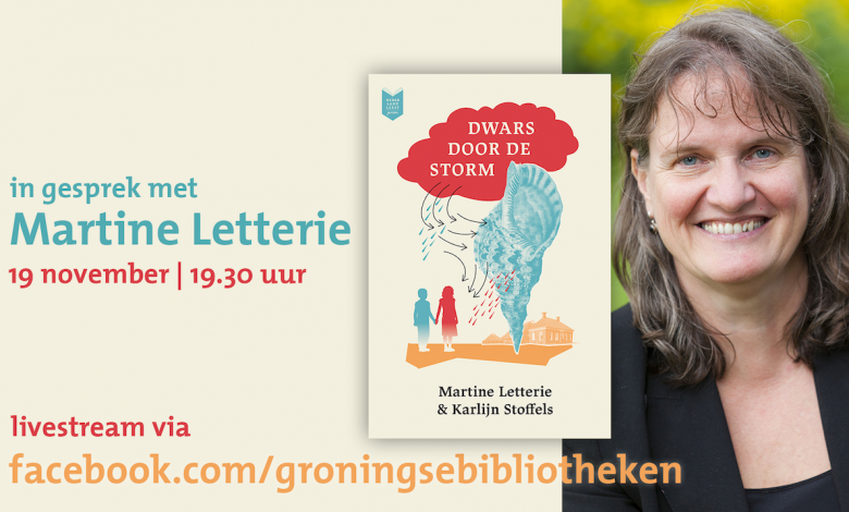 Winschoten – Schrijfster Martine Letterie komt op 19 november naar de bibliotheek om te praten over haar boek “Dwars door de storm”. Het boek heeft een Gronings tintje want het speelt zich af in Finsterwolde. Het interview wordt live uitgezonden via Facebook.