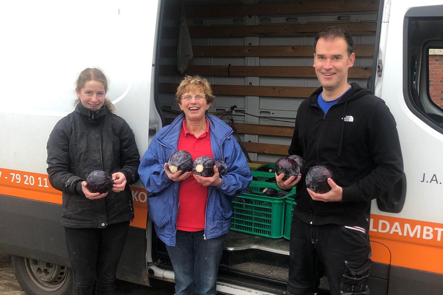 ,,De Voedselbank Oost-Groningen bedient niet minder dan 350 cliënten die op die voedselpakketten zijn aangewezen. Die voelen het direct als het aanbod slinkt’’ zegt Greven. ,,Ik dacht meteen aan die mooie rooie en witte kolen in Bellingwolde. Deze Frederik gaat bij boer Noordhoff kolen kopen en die bied ik in week 49 bij de voedselbank aan.’’