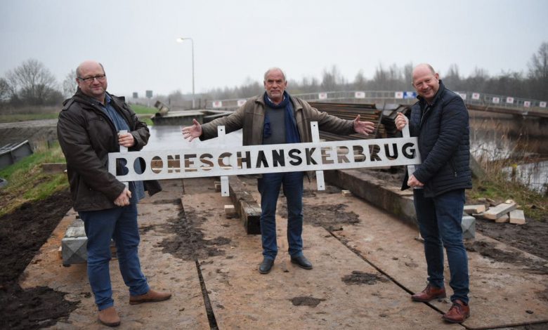Booneschans – Vorige week hebben de broers Peter en Jeroen Boneschansker de oude naamborden van de Booneschanskerbrug in ontvangst genomen.