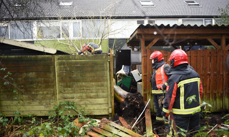 Winschoten. – Brandweer Winschoten werd zondagmiddag opgeroepen voor een stormschade aan de Eekhoornhof in Winschoten. Ter plekke was een boom omgewaaid in de tuin van een bewoner.