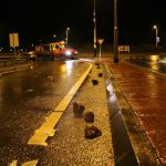 Rijkswaterstaat is vanochtend direct begonnen met opruimen. “Pas uw snelheid aan, zeker in de buurt van de opruimwerkzaamheden. De weg kan bovendien glad worden en bieten kunnen schade aan uw auto veroorzaken.” waarschuwt de politie.