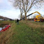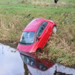 Vermoedelijk is de automobilist de bocht uitgevlogen en hierdoor in de sloot beland. Een bergingsbedrijf werd opgeroepen om de auto uit de sloot te takelen.
