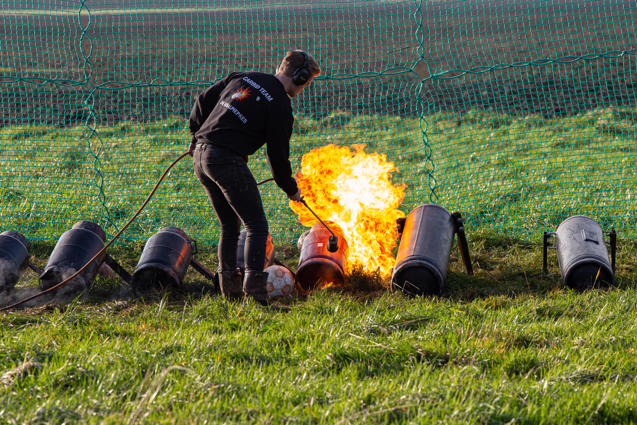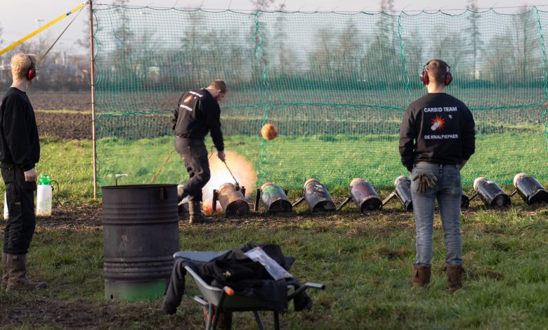 Carbid knallen volgens de voorschriften in Oldambt