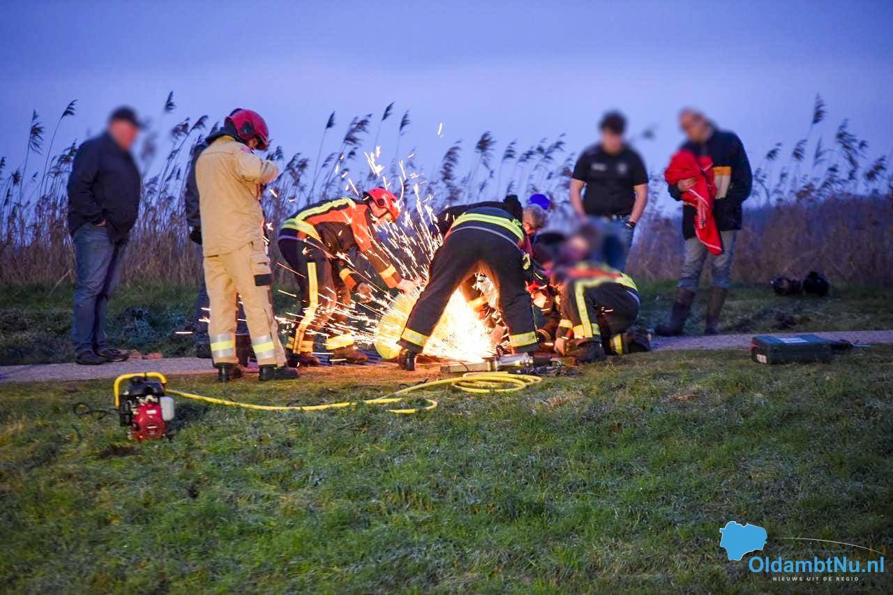 De brandweer heeft met hydraulisch redgereedschap en een flex ruimte gemaakt om de benen vervolgens uit het veerooster te krijgen, dit met succes, na een reddingsoperatie van ruim een uur kwam het paard los.