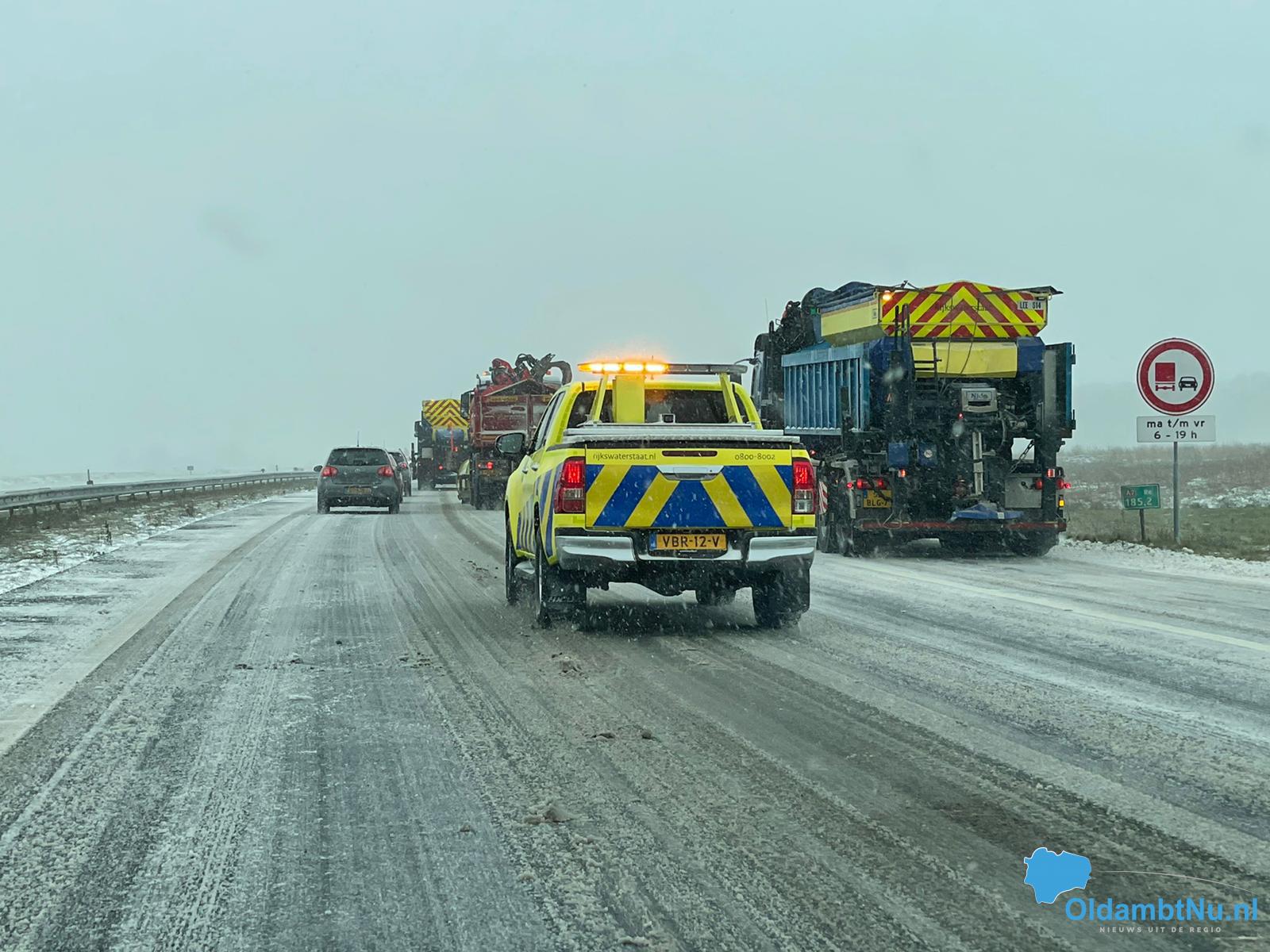 Rijkswaterstaat heeft de afgelopen 24 uur een kleine 30 miljoen kilo zout gestrooid. Naast 546 strooiwagens met sneeuwschuiver en 350 losse sneeuwschuivers zijn ook drie speciale calamiteitenmachines ingezet. Die bestrijden ijsplaten door onder hoge druk een warme zoutoplossing op het ijs te spuiten.