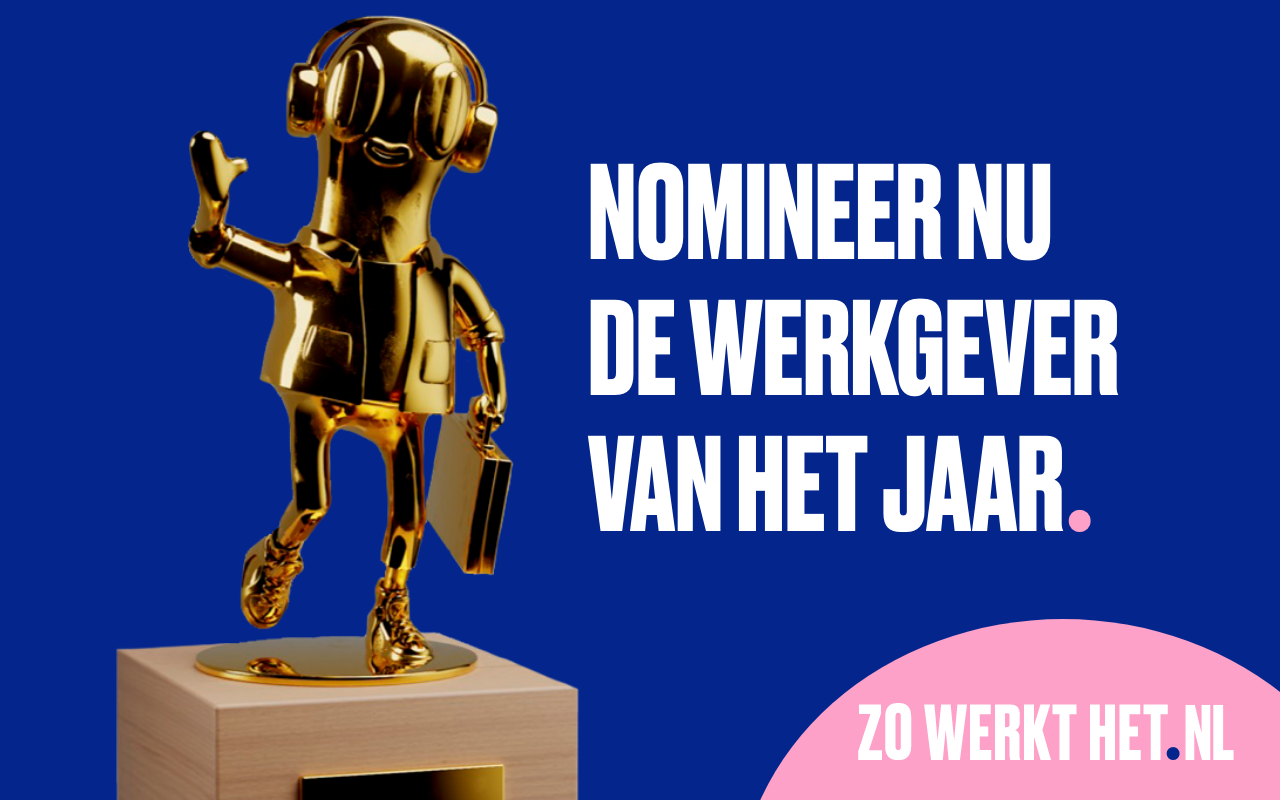 ‘Zo Werkt Het’ kiest de winnende werkgever uit de nominatie-inzendingen van werknemers door heel het land. Werknemers motiveren hun nominatie met het benoemen van de bijzondere initiatieven van hun werkgever in het afgelopen jaar. Meedoen is heel gemakkelijk! Een werkgever nomineren kan op www.zowerkthet.nl/award. Op 16 maart is de bekendmaking van de winnende werkgevers en werknemers.