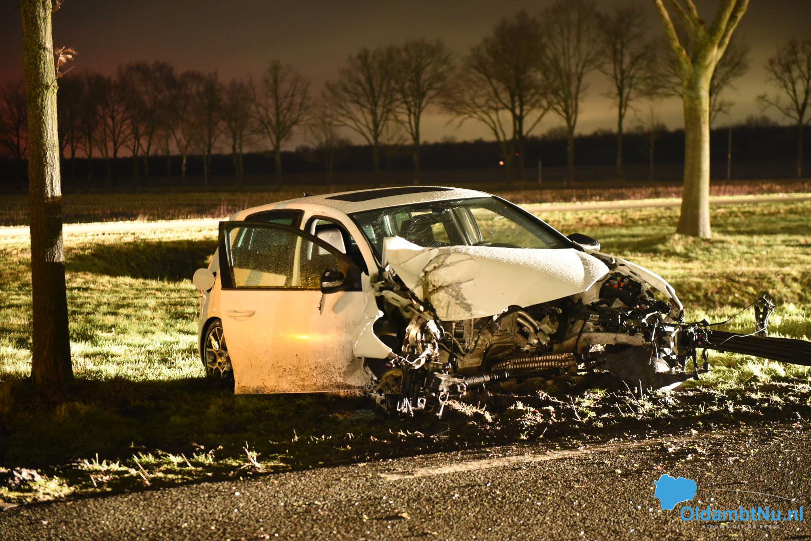 Ter plaatse aangekomen bleek dat een personenauto van de weg was geraakt. De automobilist was in de berm geraakt en vervolgens tegen een boom aan gebotst. De boom werd door de aanrijding door midden gebroken. Het motorblok vloog door de klap uit de auto.