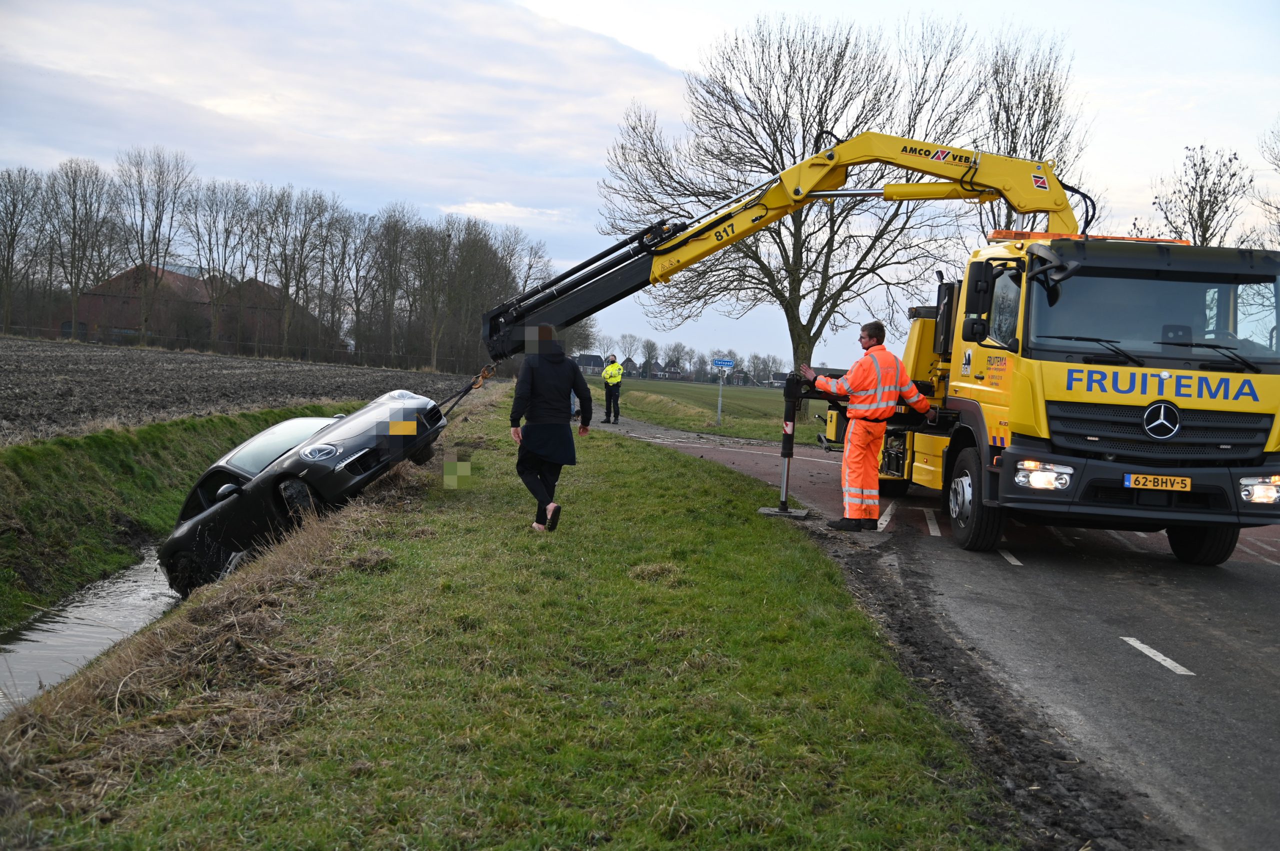 Niemand raakte gewond. Berger Fruitema kwam ter plaatse om de zwaar beschadigde auto uit de sloot te takelen en af te voeren naar een schadebedrijf. De politie noteerde de gegevens van de eigenaar.