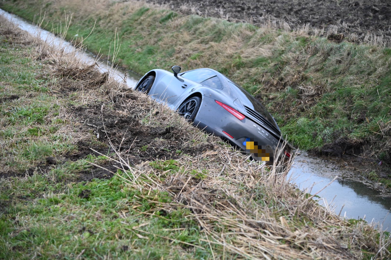 Oostwold (Oldambt) – Op de Oudlandseweg bij Oostwold(Oldambt) is zaterdagmorgen een Porsche door nog onbekende oorzaak in een sloot terechtgekomen.