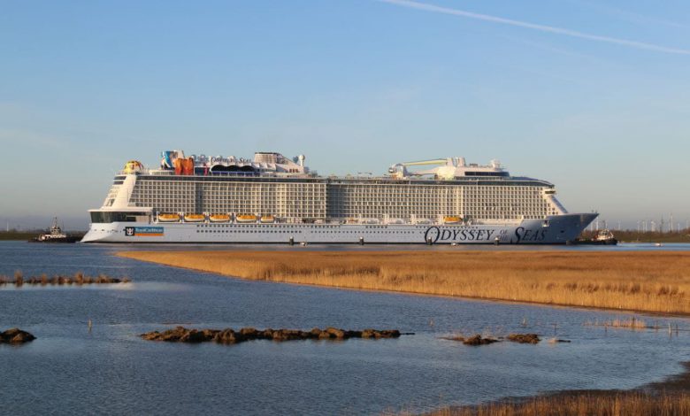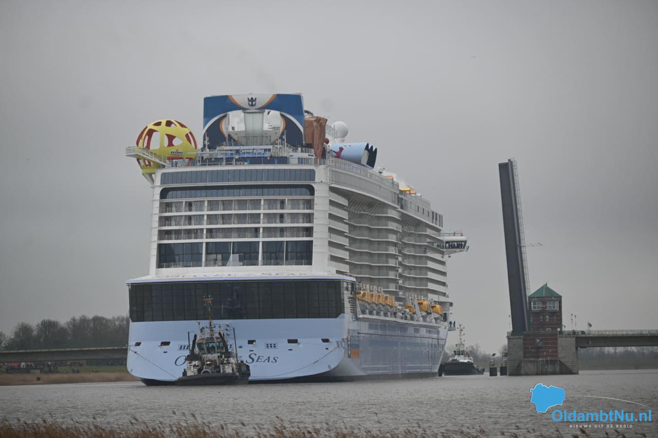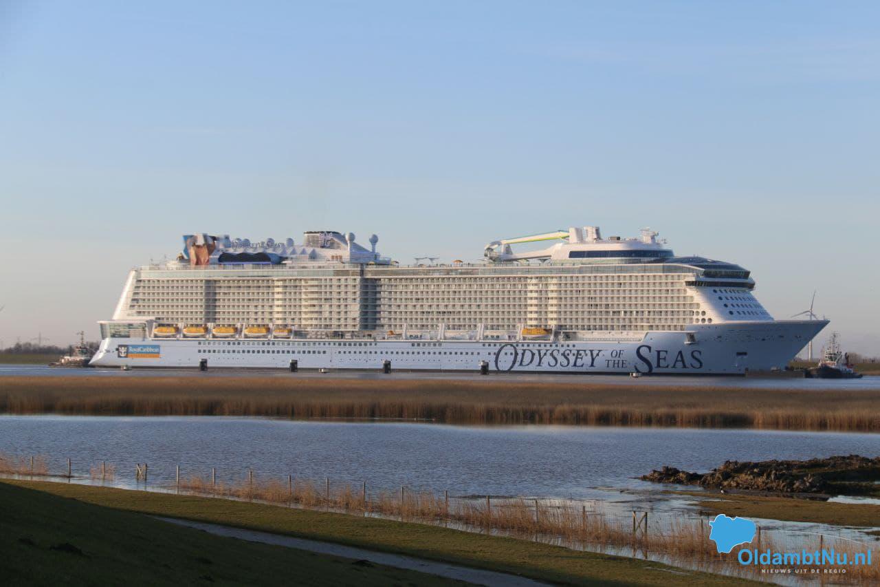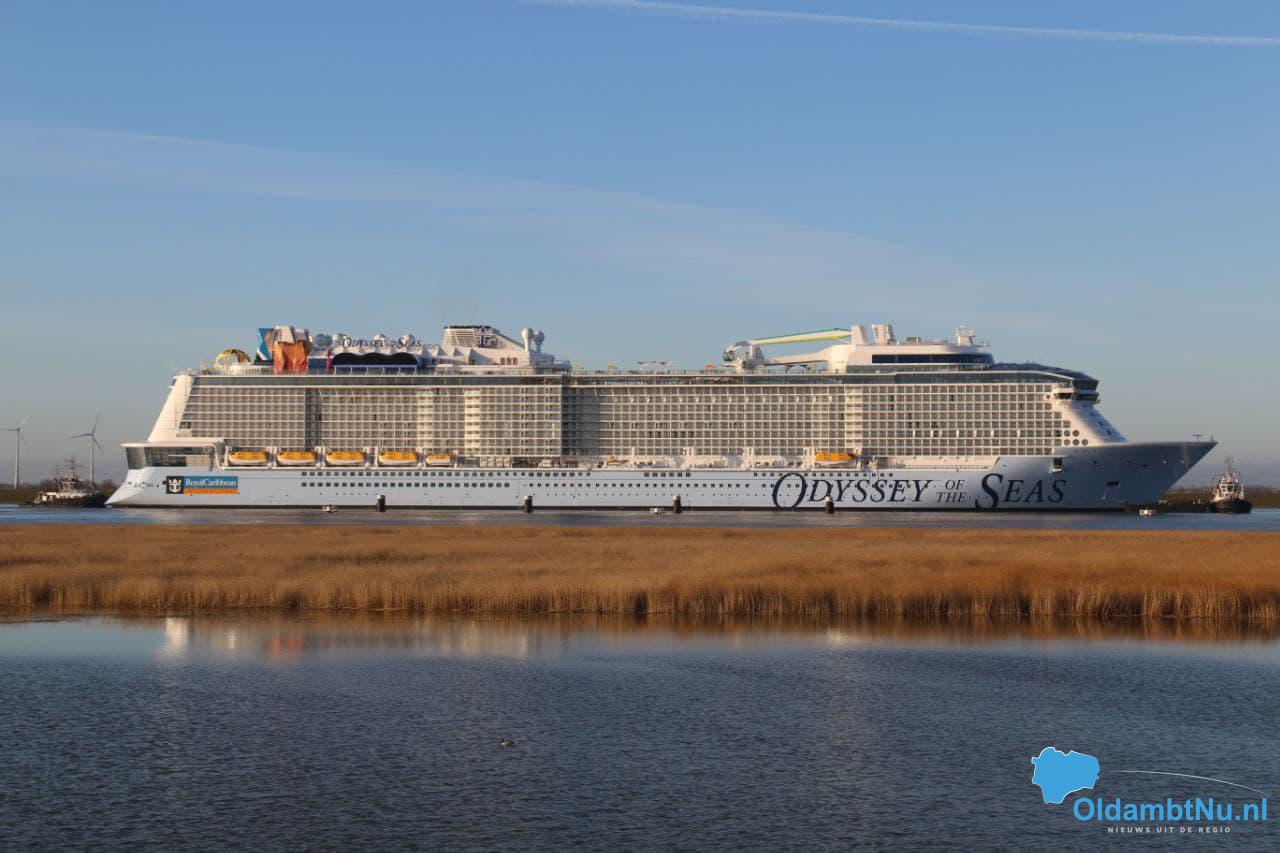 Eemshaven/ Nieuw Statenzijl – Afgelopen zondagochtend bereikte het cruiseschip Odyssey of the Seas van de Meyer Werft in het Duitse Papenburg, de Eemshaven. Daar ging een tocht vooraf. Zaterdagnacht om 03.30 uur vertrokken ze vanuit Duitsland. Het cruiseschip werd voortgetrokken door meerdere sleepboten.
