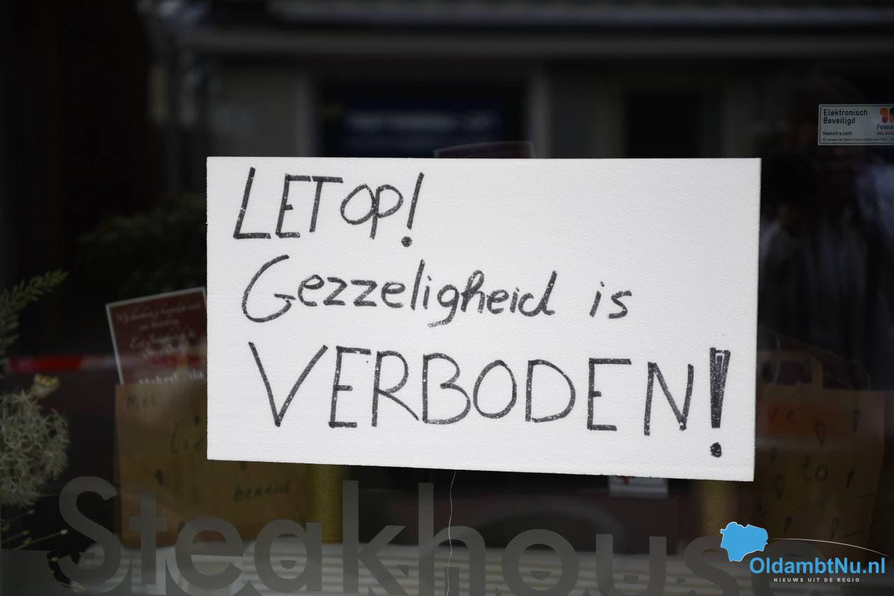 Winschoten – ‘Let op! U mag hier wel op de grond zitten, maar niet op ons terras!’ En: ‘Gezelligheid is verboden!’ Dat zijn enkele teksten die op bordjes staan bij Balkan restaurant Makedonia aan de Engelstilstraat in Winschoten. Ondernemers in de horeca voeren vandaag actie tegen de aanhoudende coronamaatregelen.