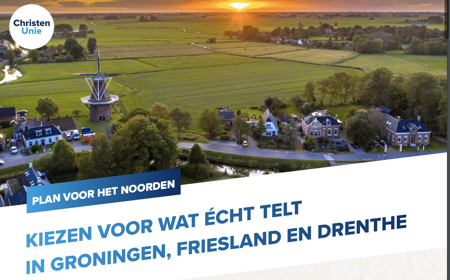 Zo moet het Noorden koploper blijven in de energietransitie, gaan we door met de regiodeals, en moet de Friese taal grondwettelijk verankerd worden in de grondwet. Daarnaast wil de ChristenUnie 100 miljoen investeren in een fonds voor de samenleving. Dit fonds kan gebruikt worden om bijvoorbeeld lokale burgerinitiatieven, ontmoetingsplekken en vrijwilligersloketten te ondersteunen.