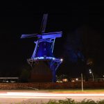 Winschoter molens blauw verlicht voor Wereld Autisme Dag