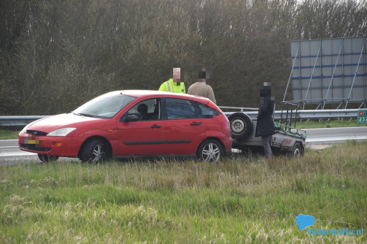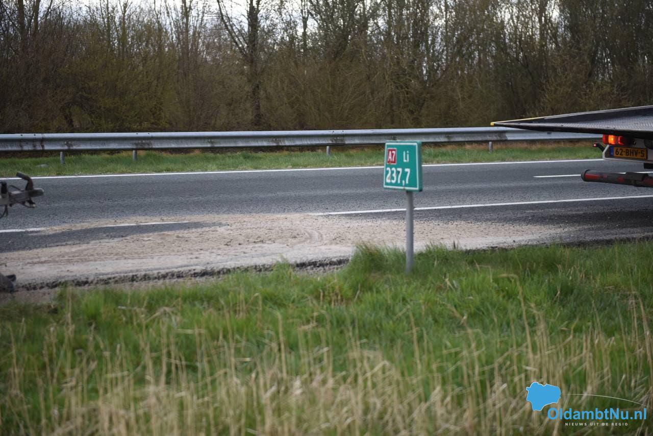 De auto had een aanhanger achter zich die geladen was met wit zand . Vermoedelijk is de aanhanger gaan scharen waarna de bestuurder de controle over zijn voertuig verloor. Op de vluchtstrook lag een deel van de inhoud uit de aanhanger. Rijkswaterstaat heeft de weg weer schoongemaakt. Berger Fruitema heeft de aanhanger afgesleept. Er raakte niemand gewond.