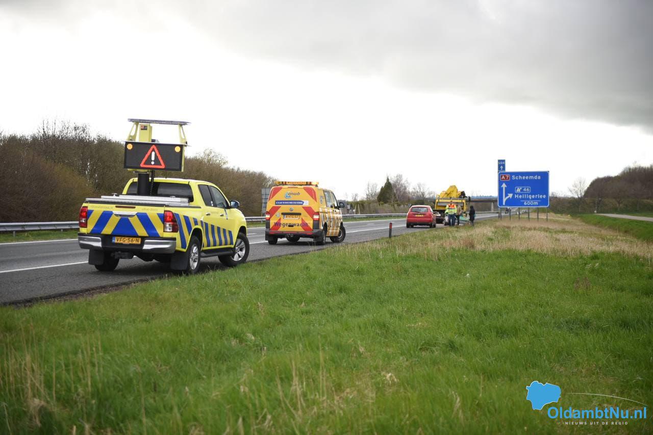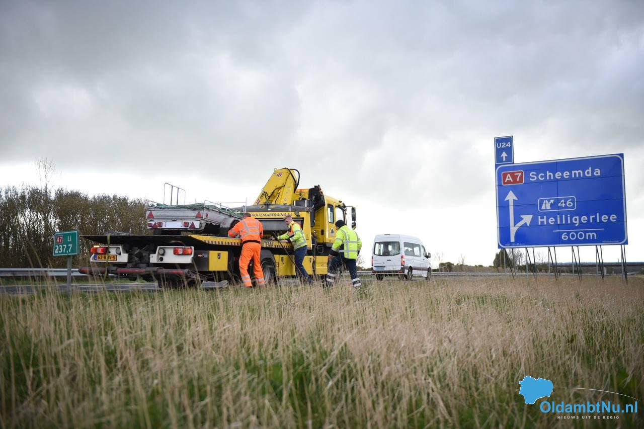 Winschoten – Op de A7 bij Winschoten richting Scheemda, is zondag aan het eind van de middag een ongeval gebeurd waarbij een automobilist met zijn voertuig plus aanhanger 180 graden gedraaid is en op de vluchtrook van de A7 tot stilstand kwam.