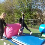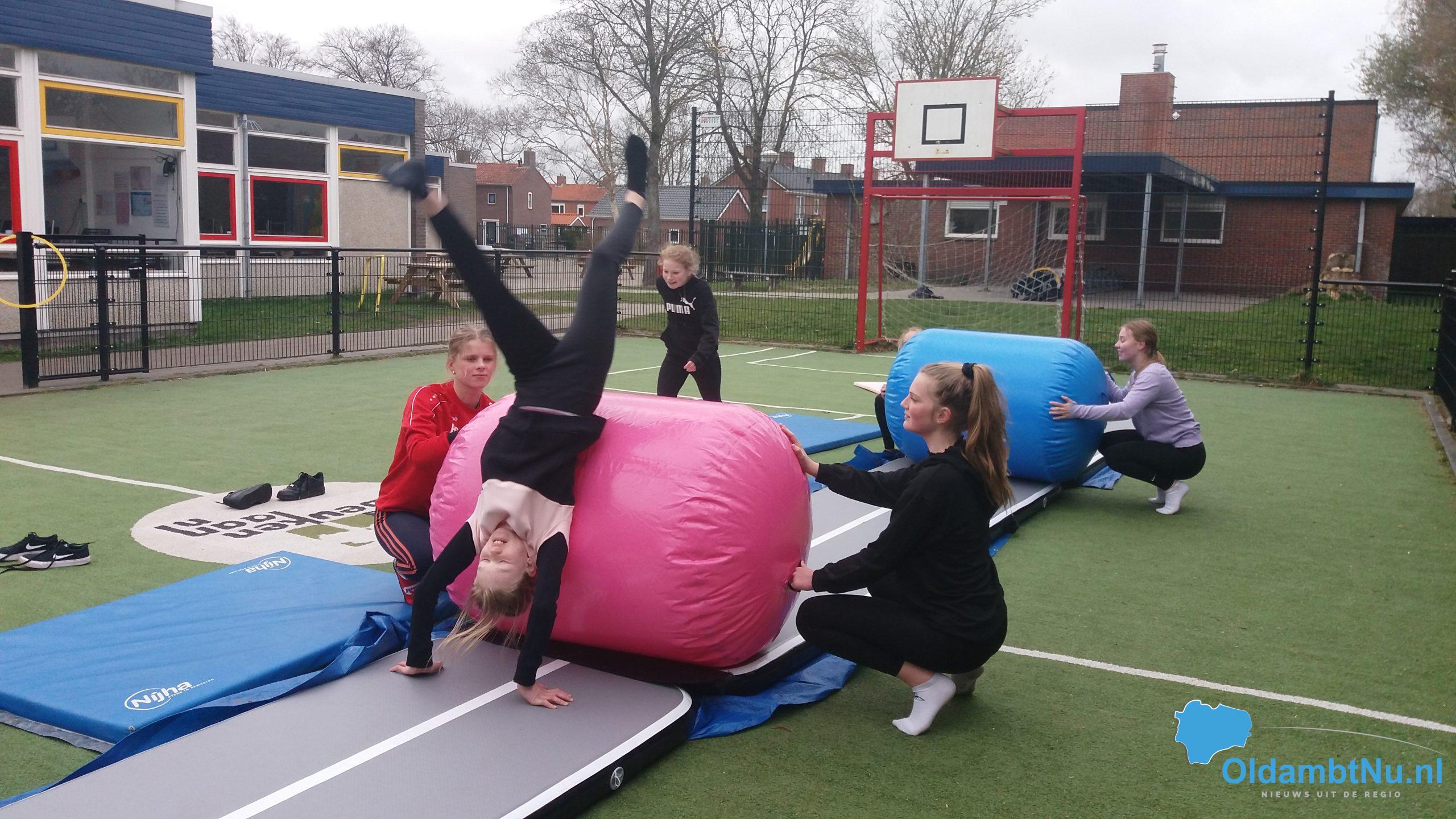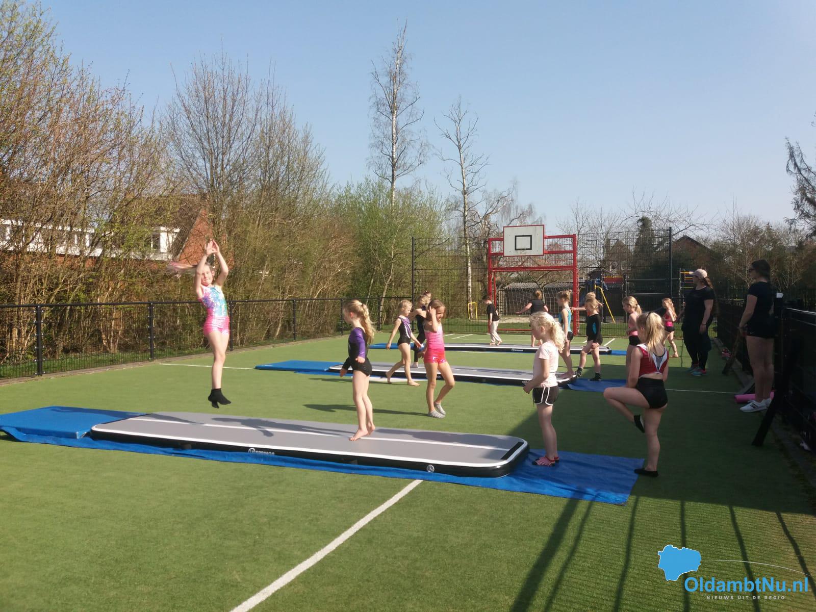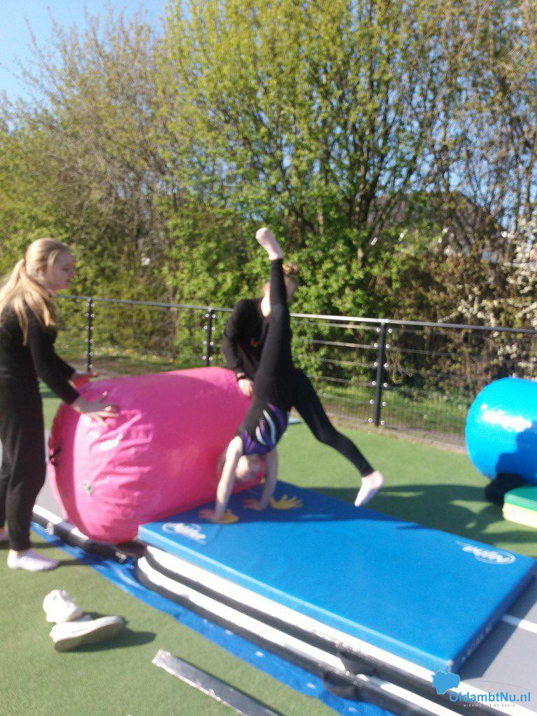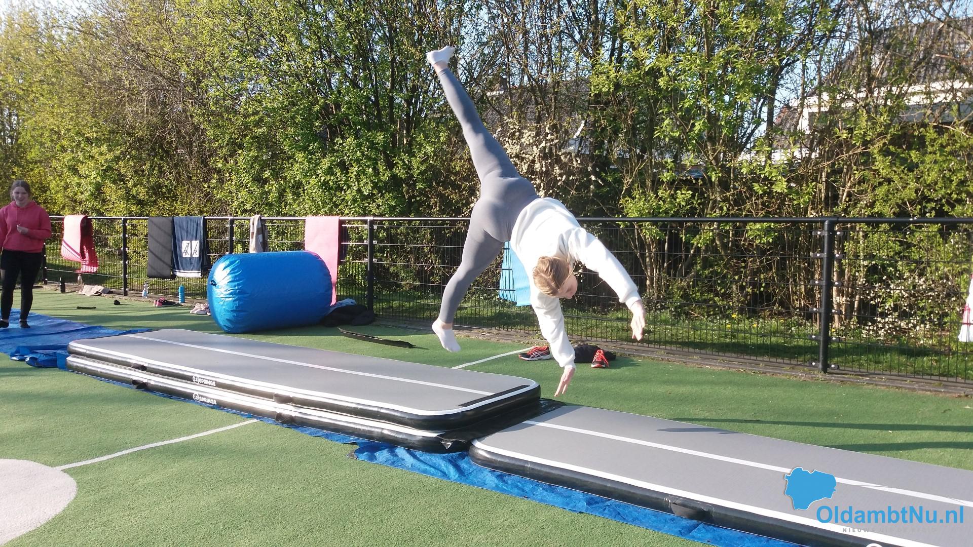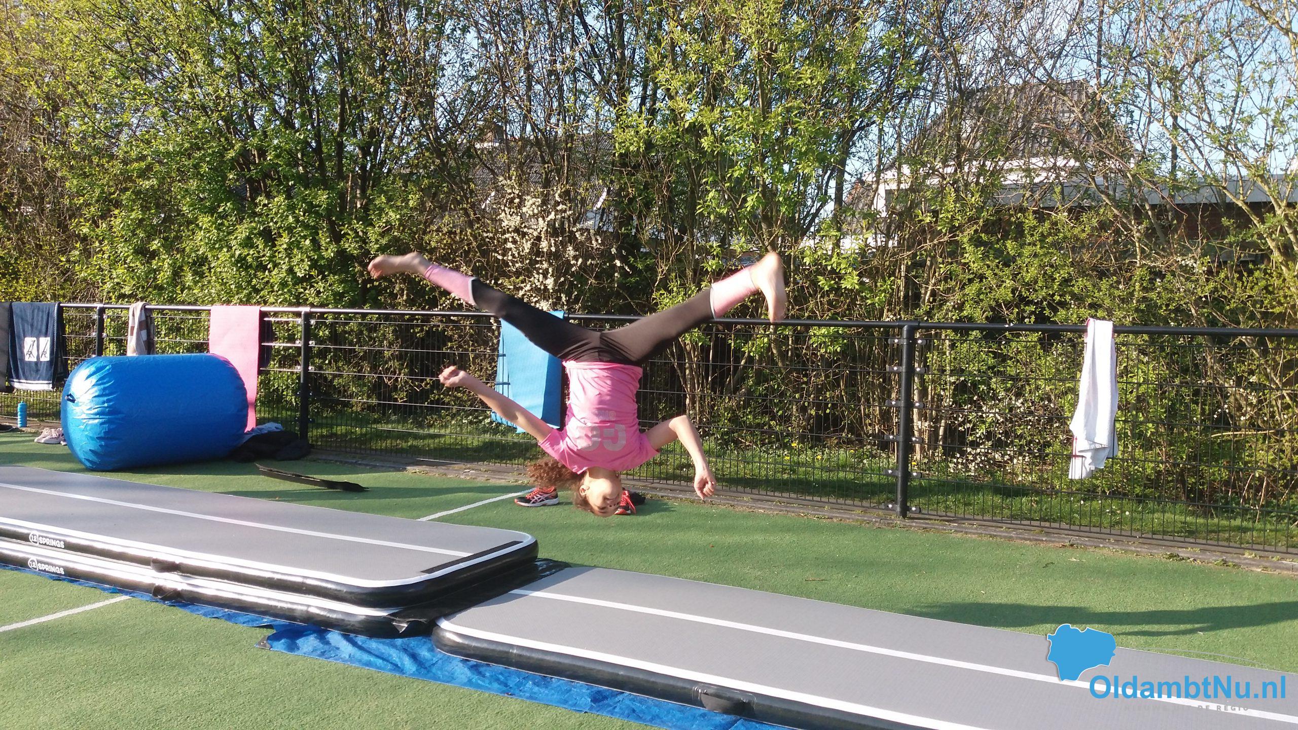 Omdat de gymtoestellen niet buiten gebruikt kunnen worden, heeft de vereniging speciaal voor deze buitenlessen drie Airtracks en Airrollen aangeschaft. Zo kan er op een veilige manier toch veel acrobatiek gedaan worden. Ook kunnen de trainsters veel gebruik maken van alle aanwezige rekstokken, een klimmuur en andere leuke en leerzame speelmaterialen!