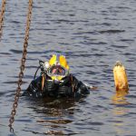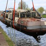Vandaag is de boot van de bodem van de Rensel gehaald. Een duiker heeft stalen kabels onder de boot door gemanoeuvreerd waarmee een grote kraan de boot langzaam omhoog kon tillen. Nadat het meeste water uit de romp gepompt waren kon onder toeziend oog van de Gemeente Oldambt en Waterschap Hunze en Aas het schip geborgen worden.