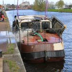Gezonken boot aan de Renselkade in Winschoten geborgen