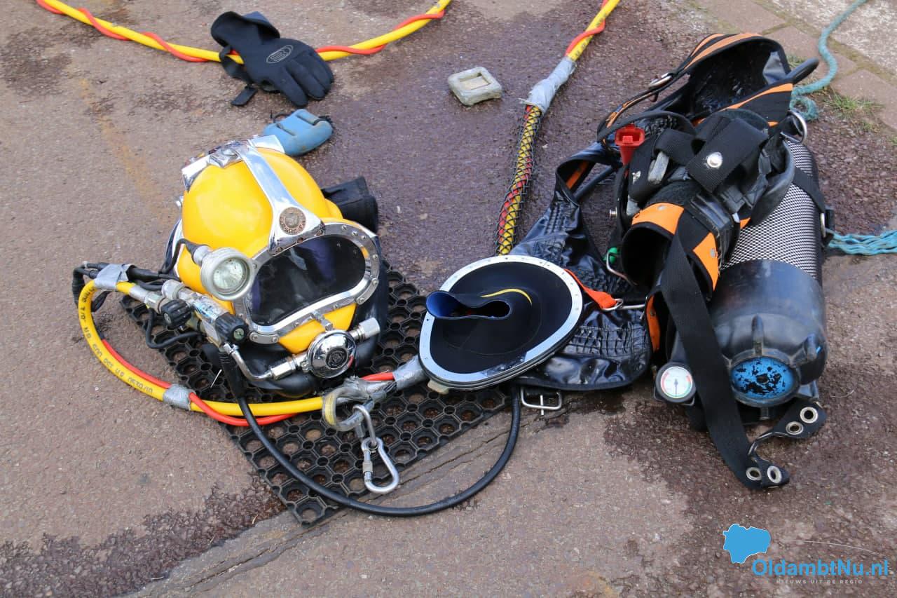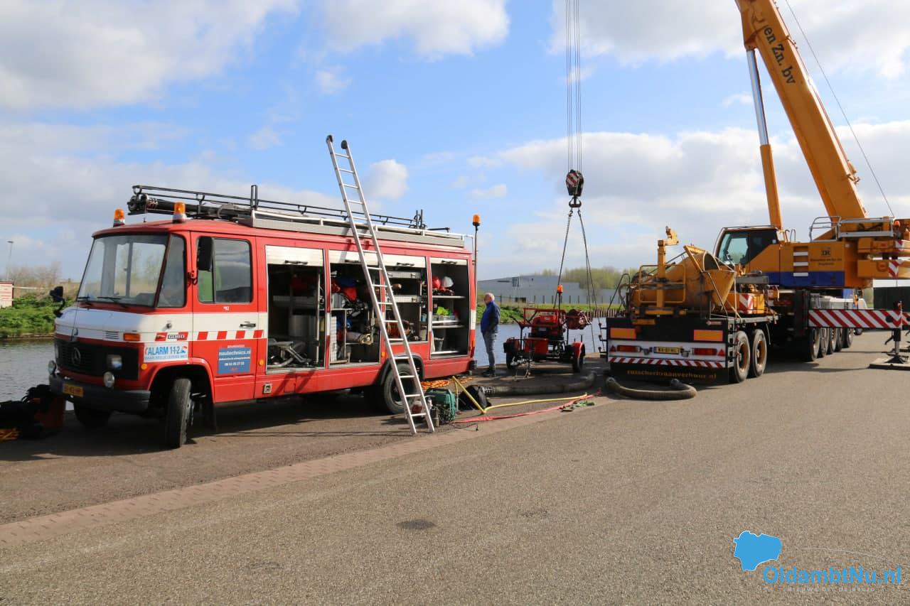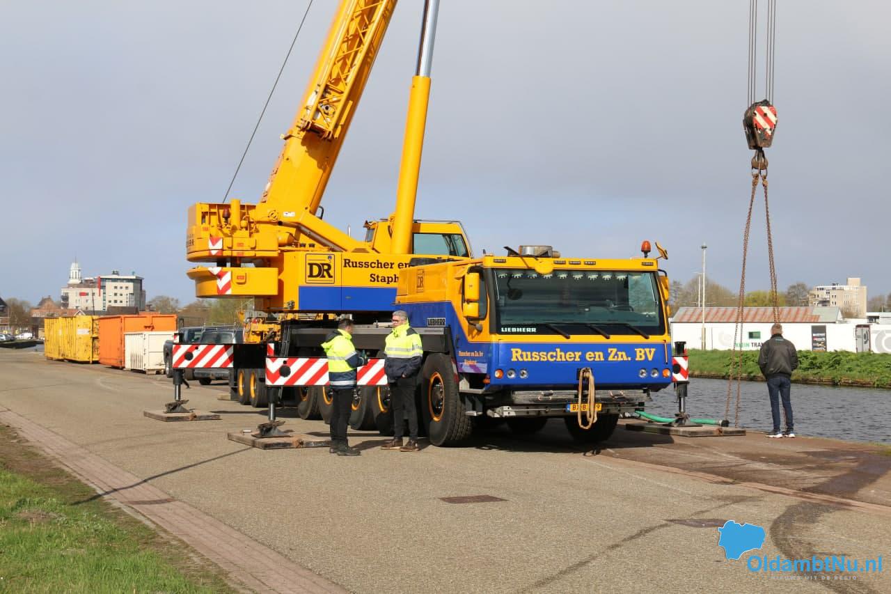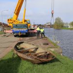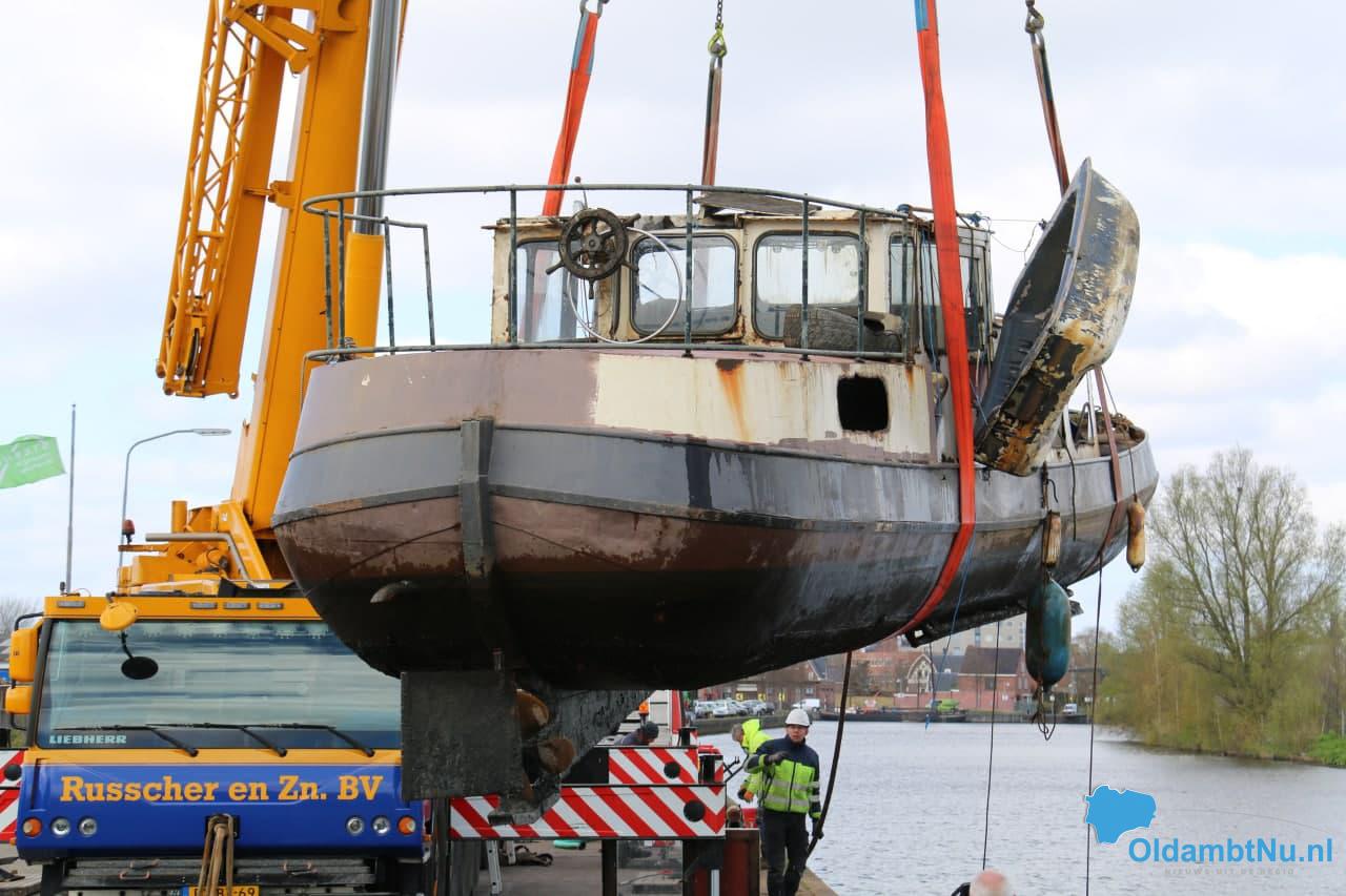 Gezonken boot aan de Renselkade in Winschoten geborgen