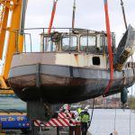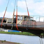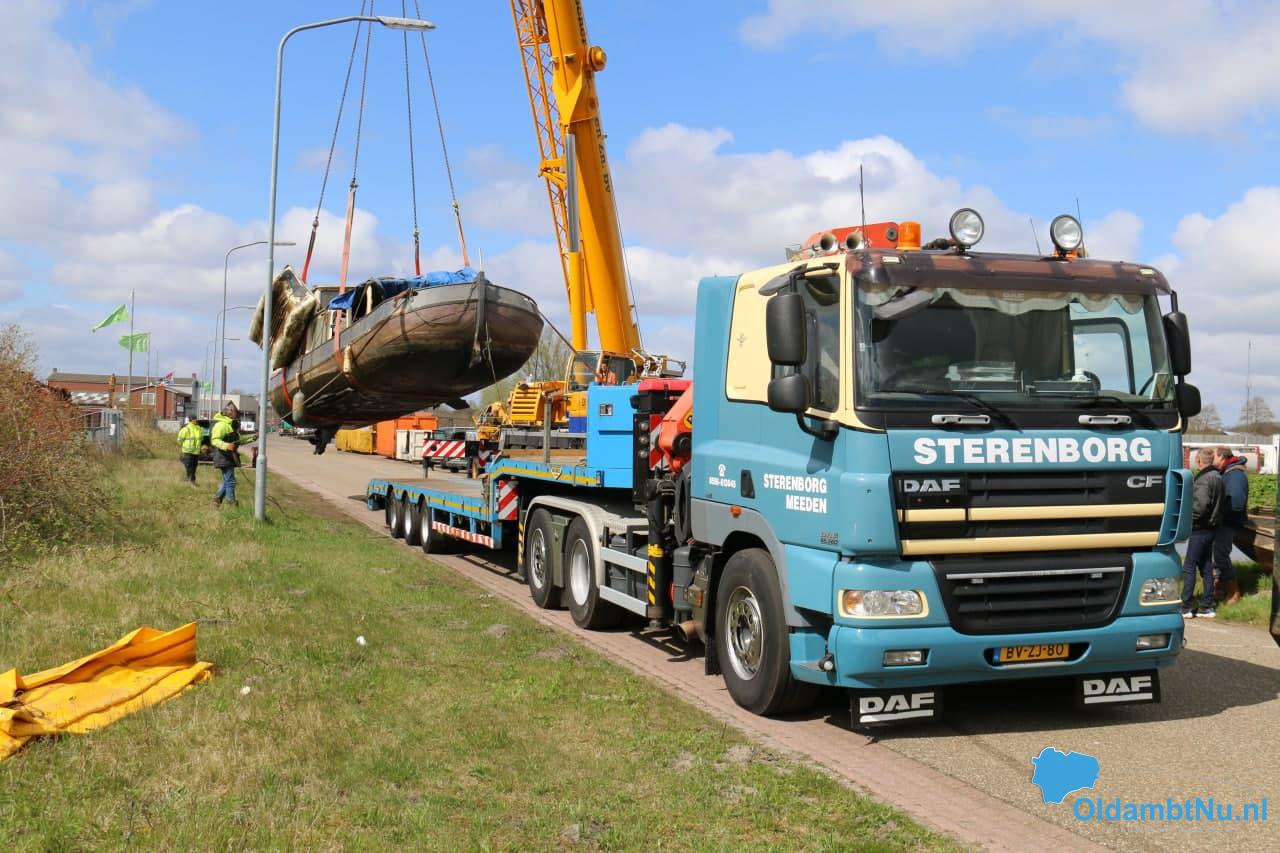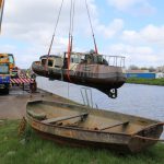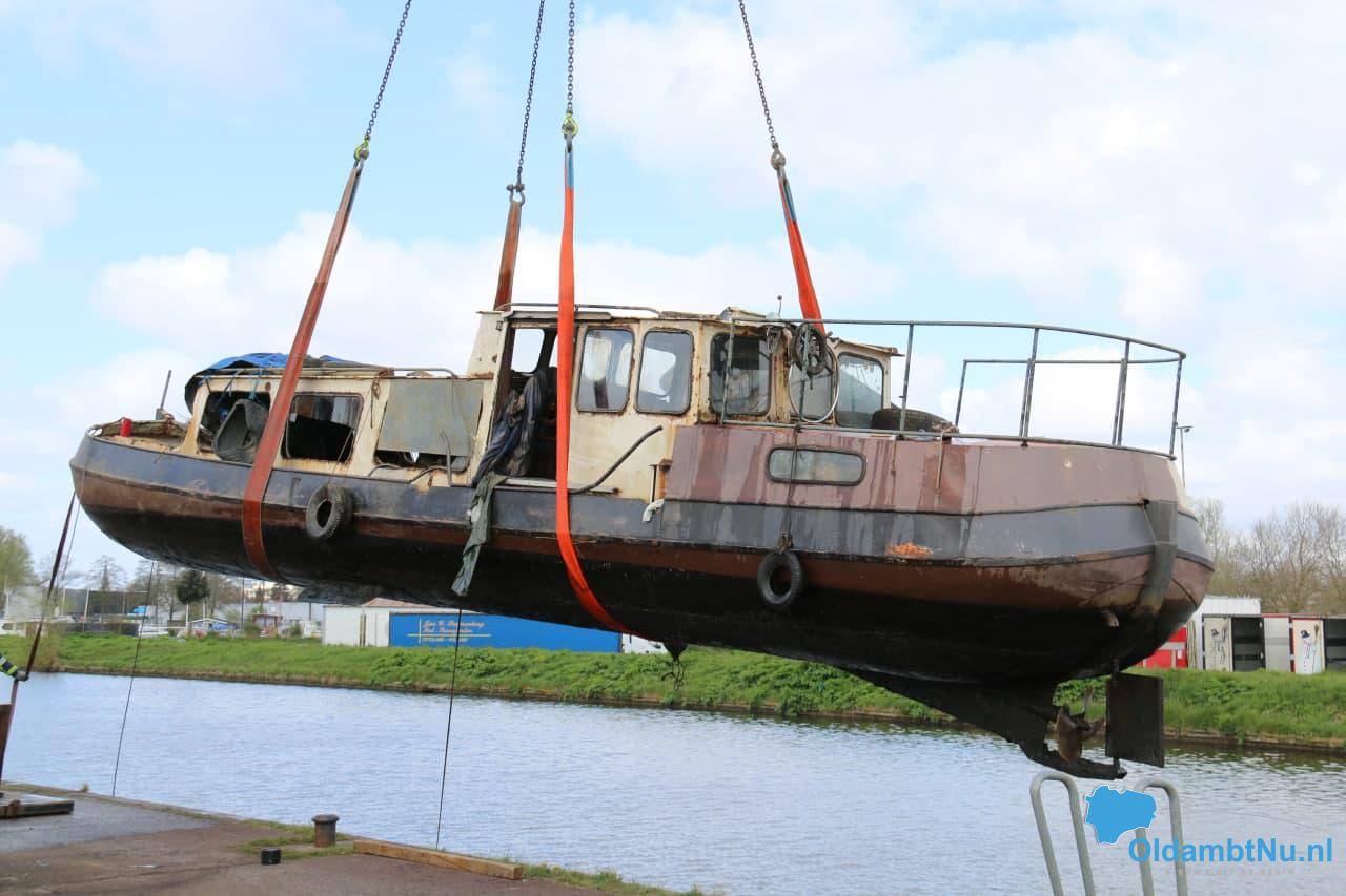Vandaag is de boot van de bodem van de Rensel gehaald. Een duiker heeft stalen kabels onder de boot door gemanoeuvreerd waarmee een grote kraan de boot langzaam omhoog kon tillen. Nadat het meeste water uit de romp gepompt waren kon onder toeziend oog van de Gemeente Oldambt en Waterschap Hunze en Aas het schip geborgen worden.