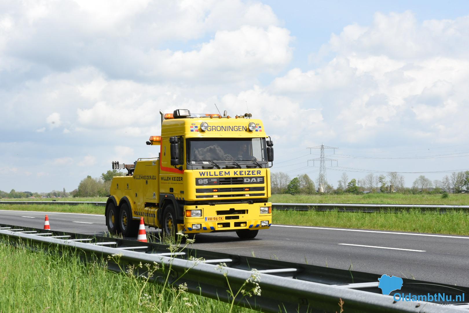 Update: bergingsbedrijf Keizer was ter plaatse gekomen en heeft het probleem opgelost. De weg is weer volledig vrijgegeven.