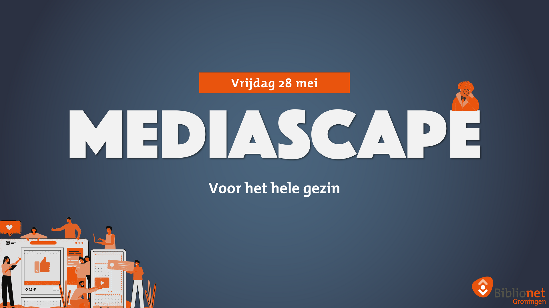 Op vrijdag 28 mei zal er van 19.00 – 20.15 uur een heus Mediascape-spektakel plaatsvinden. In de studio van Biblionet Groningen wordt een escaperoom gebouwd waarin een gezin opdrachten moet doen. Maar ook thuis kan je meespelen! Aan de hand van verschillende opdrachten gaan we deze avond aan de slag met fakenews, informatievaardigheden en digitale skills. Lukt het jullie om op tijd de opdrachten op te lossen?