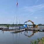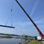 Blauwestad – In Blauwestad ligt tussen de wandelboulevard in het Havenkwartier en strand Zuid een houten steigerbrug. Om in de toekomst nog meer vaarroutes te creëren, werd in deze steiger afgelopen woensdag een draaiend deel aangebracht.