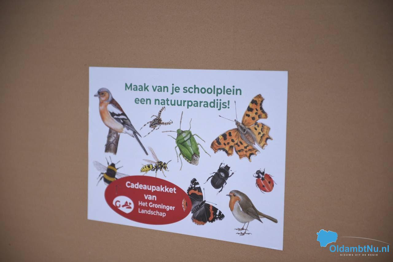 Oostwold – Het Groninger Landschap bestaat in 2021 85 jaar. Ter ere van dit jubileum biedt Het Groninger Landschap alle basisscholen in Groningen een “Maak van je schoolplein een natuurparadijs!-cadeaupakket” aan. Het eerste exemplaar is vrijdag aangeboden aan de directeur van de openbare basisschool De Noordkaap in Oostwold, Jan Paul Siebelink, samen met 54 leerlingen van de groepen 6, 7, en 8.