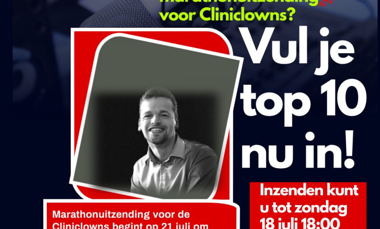 Belandt jouw top 10 hoog in de top 500 marathonuitzending voor Cliniclowns?