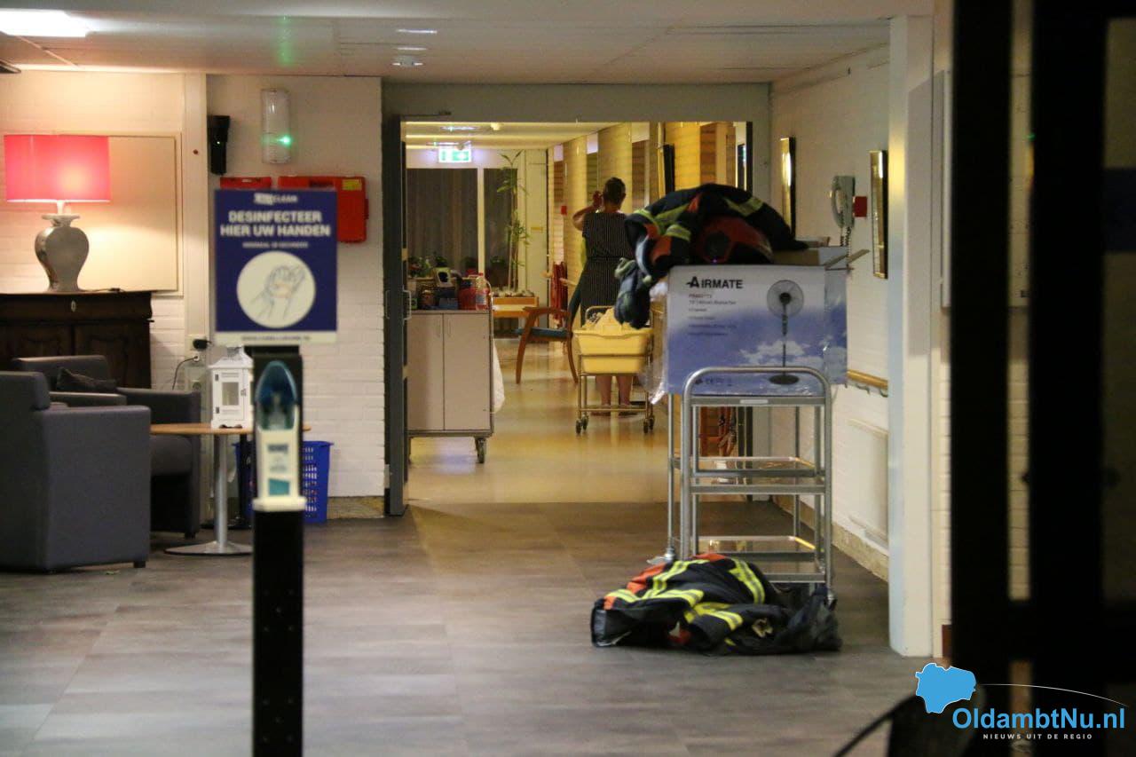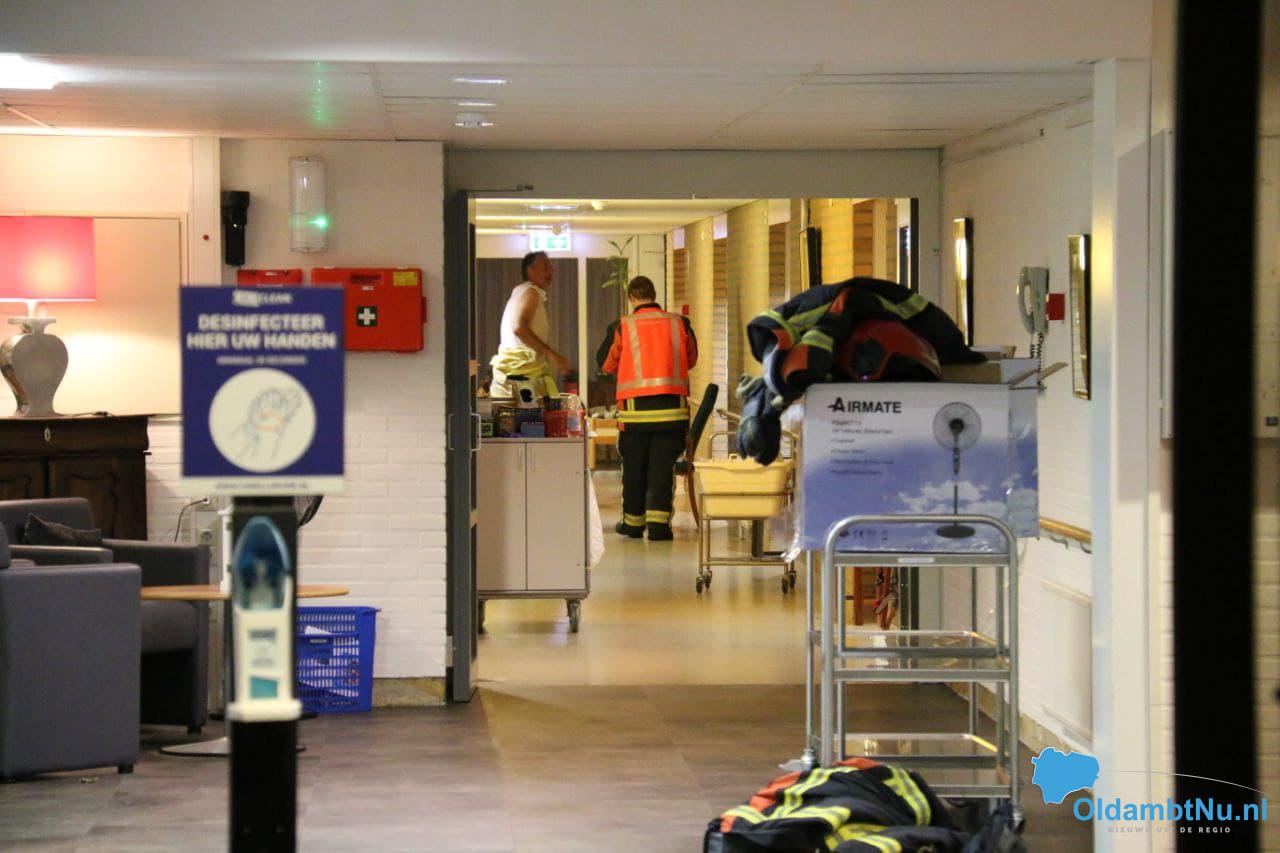 De brandweer is samen met het personeel van het verpleegcentrum de woningen aan het schoonmaken. Door het complex hangt momenteel een onprettige geur.