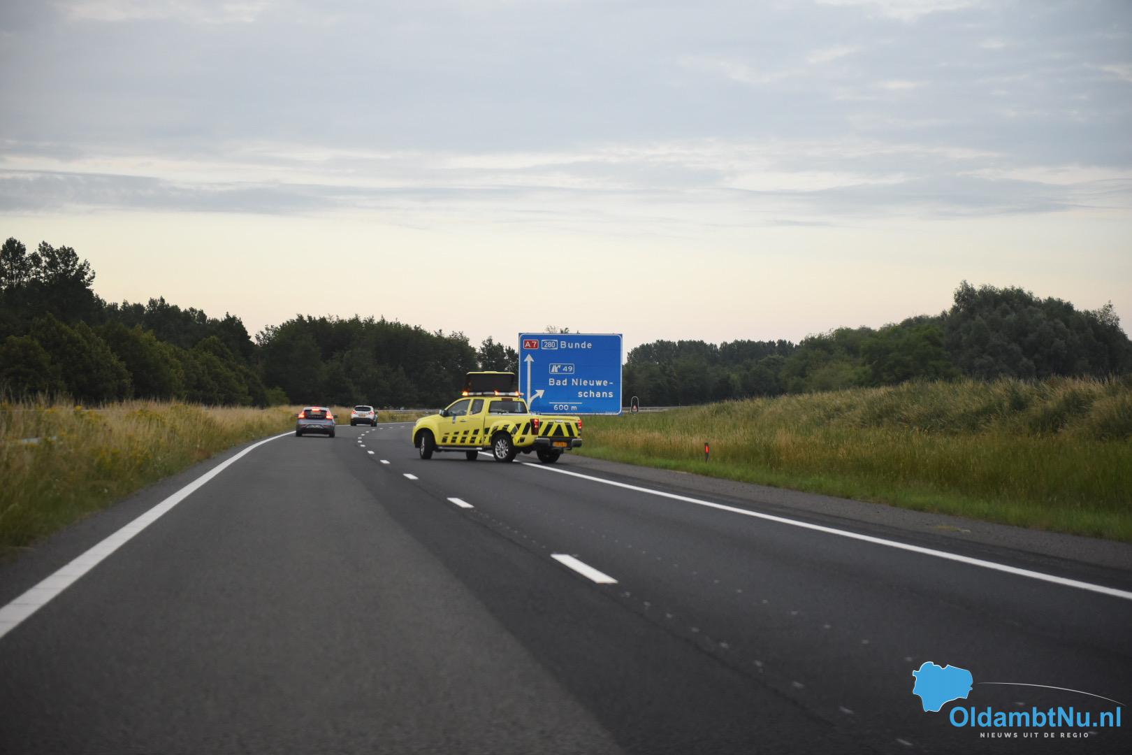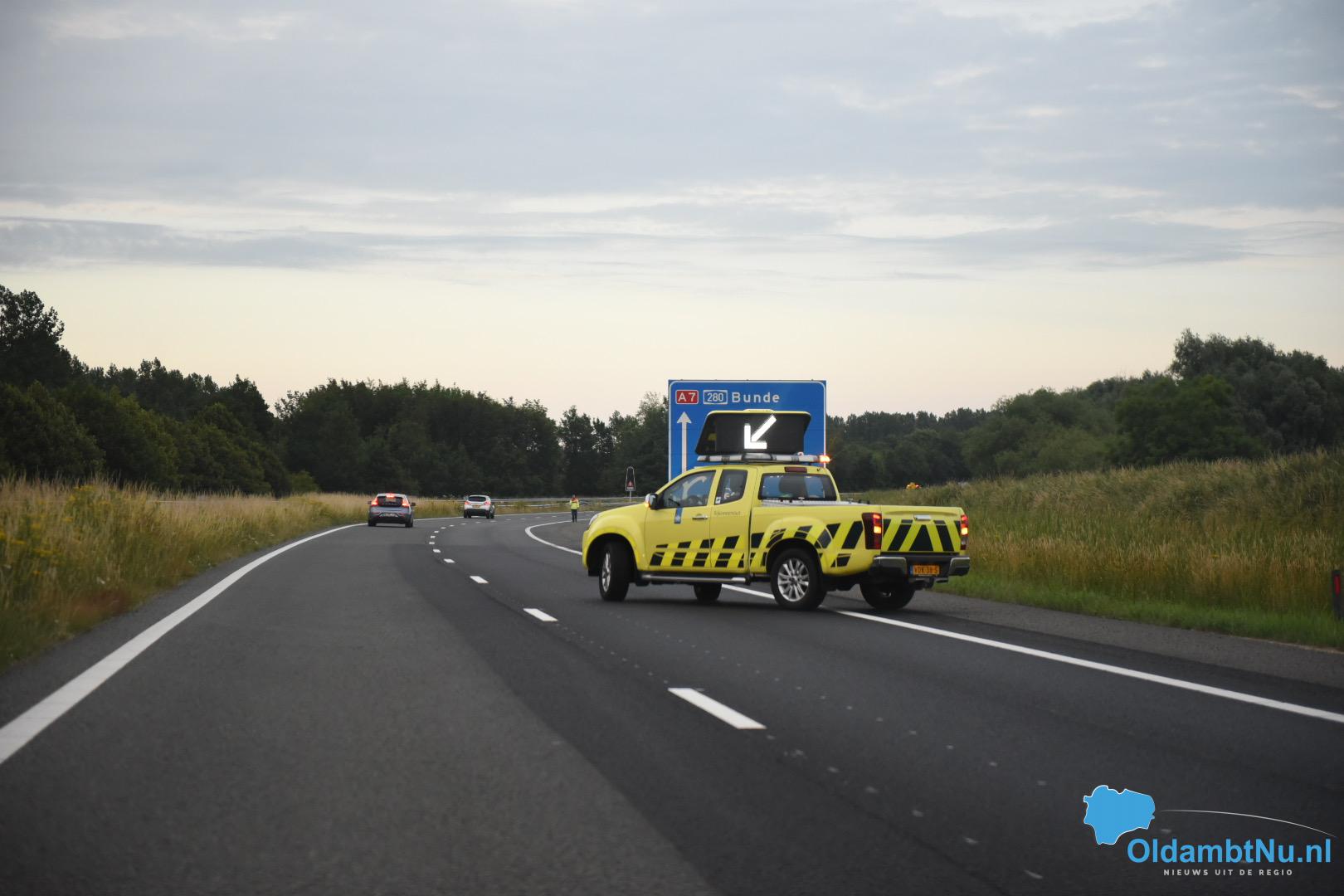 Door Rijkswaterstraat zijn er tijdelijk enkele rijstroken afgesloten om de weg schoon te kunnen maken en om de auto te kunnen bergen. Bergingsbedrijf Fruitema uit Oude Pekela heeft het voertuig geborgen.