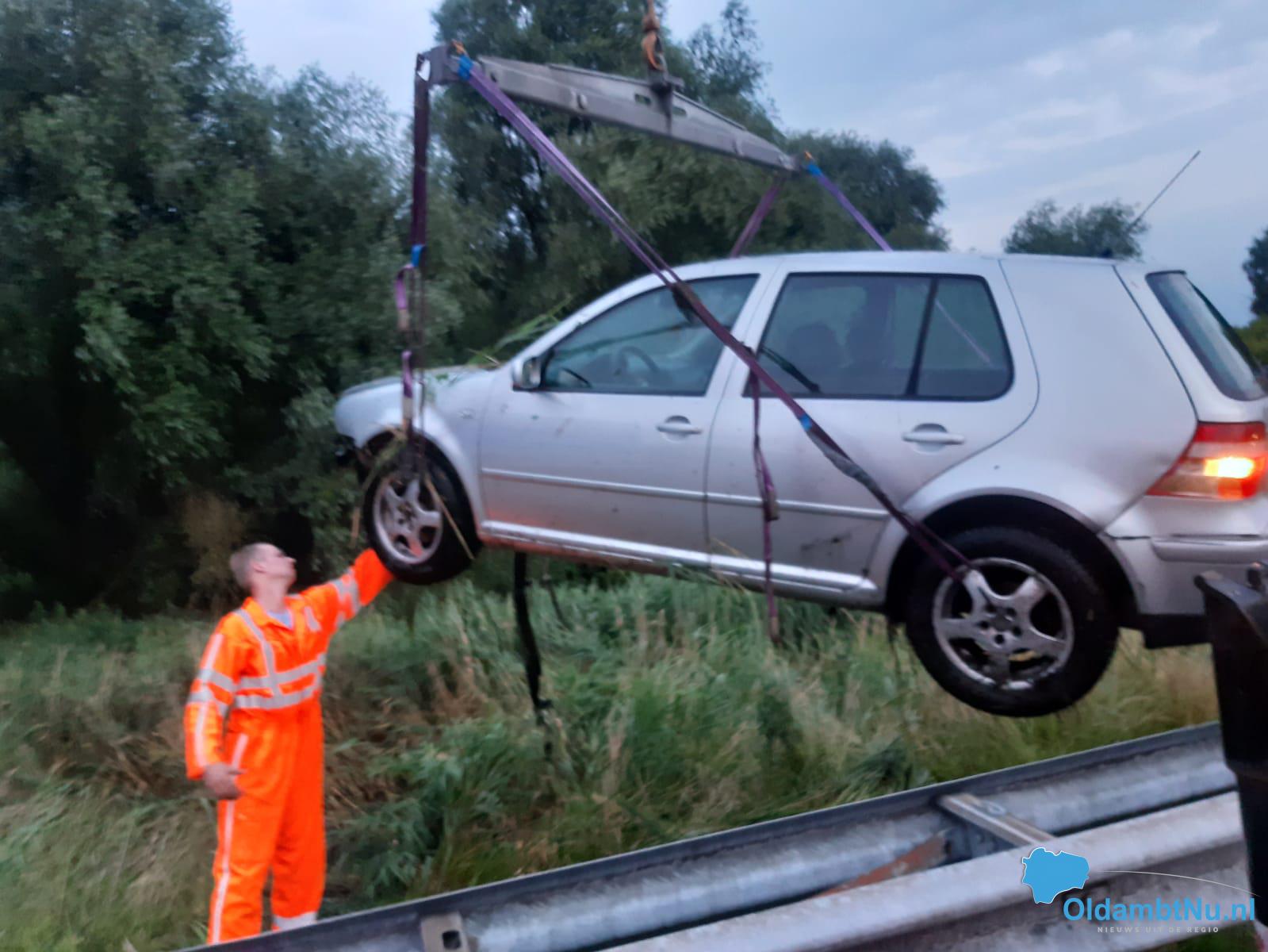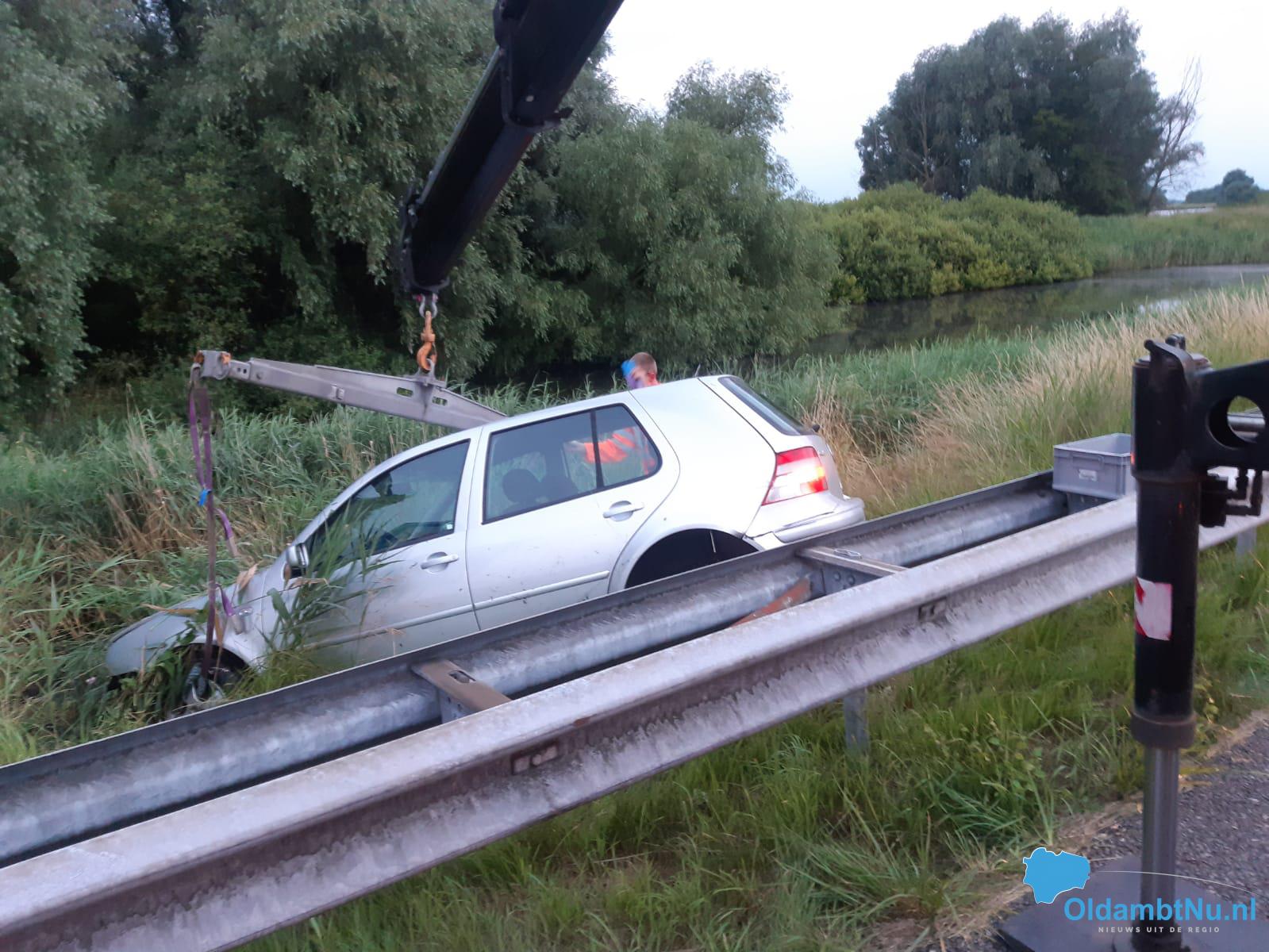 Auto raakt in geleiderail en vervolgens in water A7