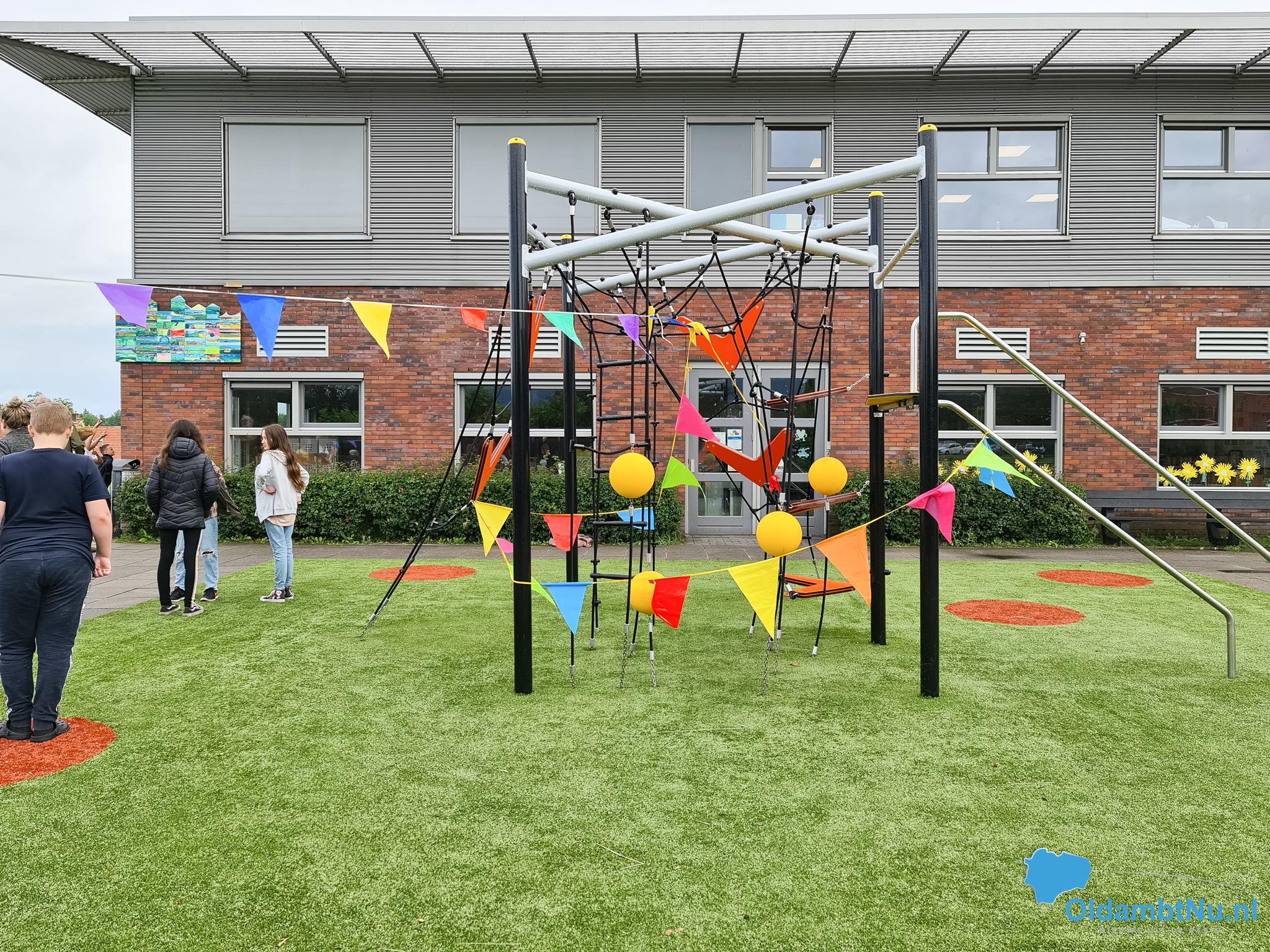Finsterwolde- OBS De Bouwsteen in Finsterwolde heeft een nieuw schoolplein. Nieuw is het concept van bewegend leren. Door slim gebruik van kleuren, materialen en verrassende opstellingen, is het schoolplein nu