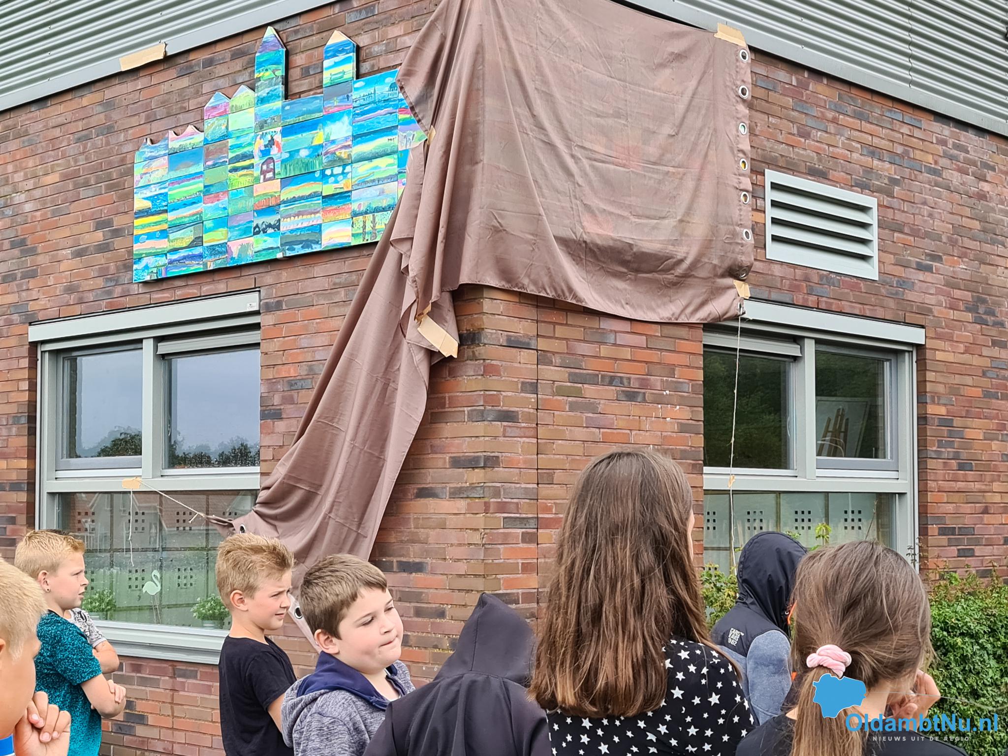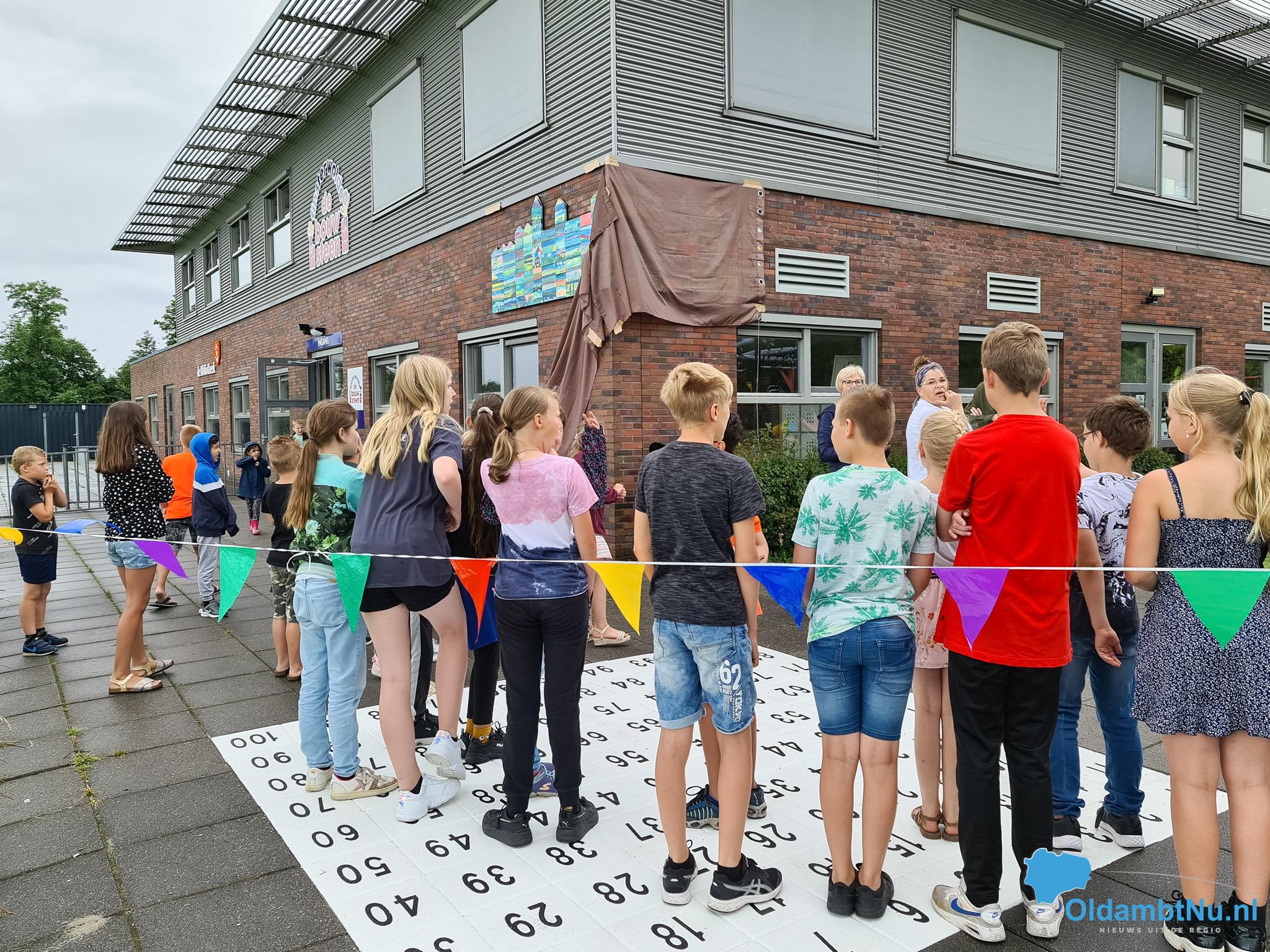 Op 5 juli 11.00 uur vond de onthulling plaats van het kunstwerk, dat op een prominente plek aan de gevel van de school hangt. (waar voorheen de gevel was behangen met nestkastjes). Ook werd op dat moment het nieuwe schoolplein officieel geopend samen met de leerlingen.