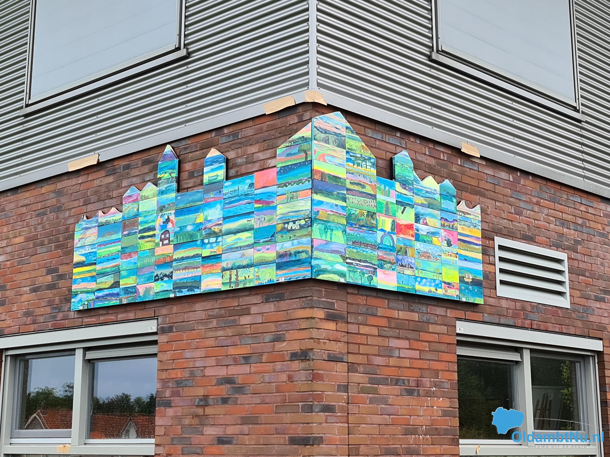 ‘’Zicht op land en zee’’ is het thema van het nieuwe buitenkunstwerk aan de gevel van De Bouwsteen. Het project verbindt cultureel erfgoed met geschiedenis en de kunstvakken. Aan de hand van een lesbrief, kregen alle groepen eerst les over het thema. De kennis over de geschiedenis en het landschap en de verbondenheid met het water, vormden vervolgens de basis voor het kunstwerk.