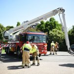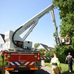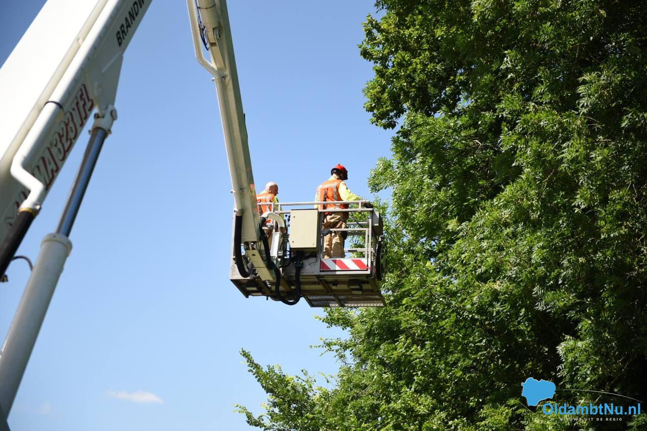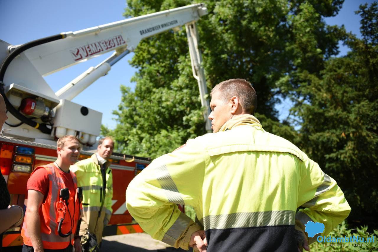 De brandweer heeft de poes met een ladder proberen te bereiken maar dat was tevergeefs. Een hoogwerker van brandweer Winschoten moest eraan te pas komen. Naarmate de hoogwerker dichterbij kwam werd het de poes teveel. Het beestje sprong van 8 meter hoogte naar beneden. De brandweer kon na een uur terug naar de kazerne.