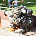 Waterpomp op bouwplaats vat vlam