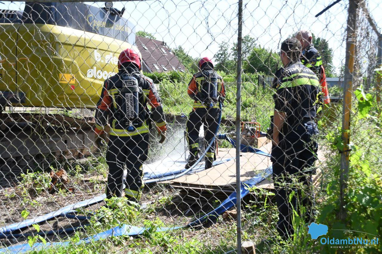 Waterpomp op bouwplaats vat vlam