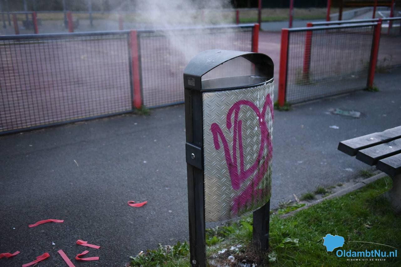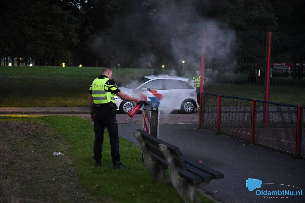 Politie blust prullenbakbrand aan de Pekelderstraat in Winschoten